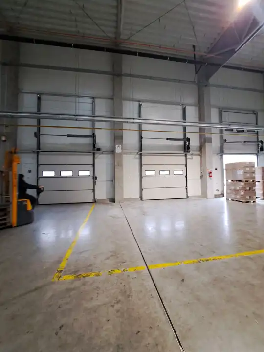 - Brama wjazdowa: 3 segmentowe bramy z poziomu „0” ułatwiające załadunek i rozładunek TIR-ów o wymiarach 3x4,2m