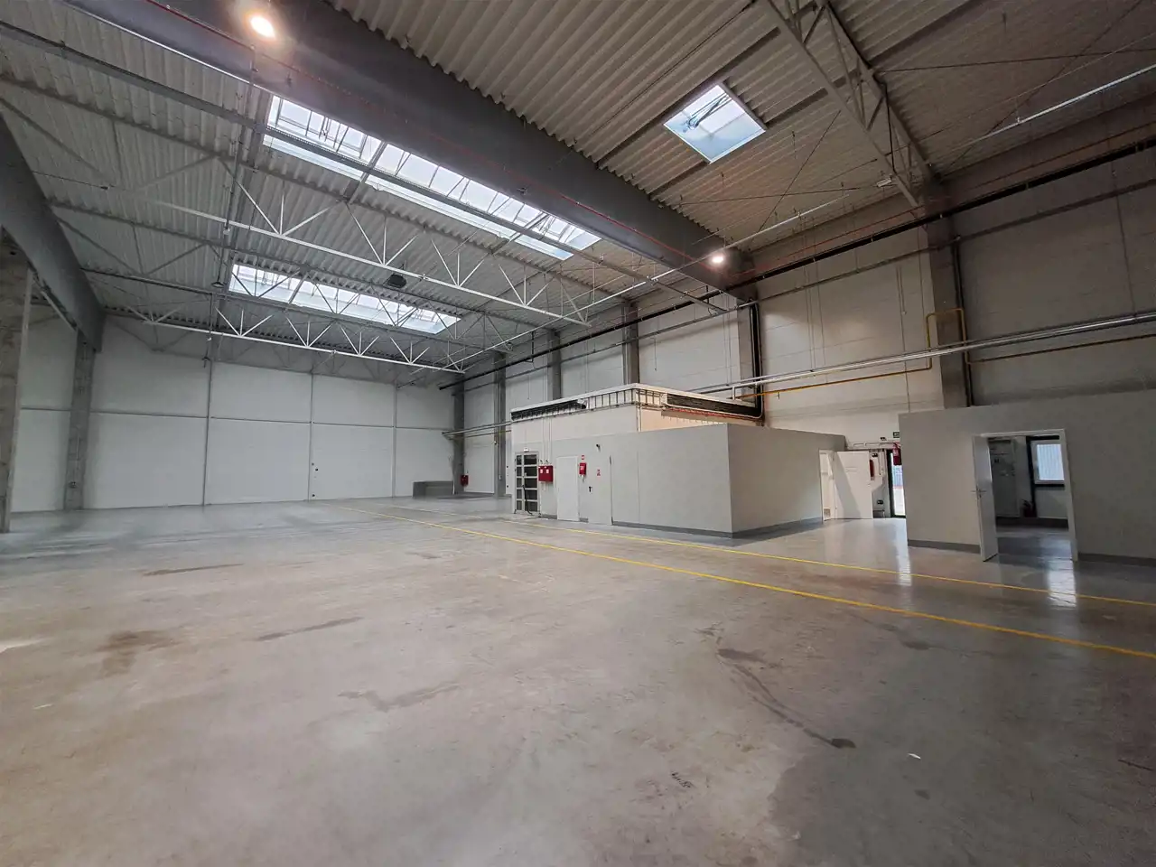 - Posadzka przemysłowa: 5T/m2 nośność dopasowana do ciężkiego sprzętu i wózków widłowych.