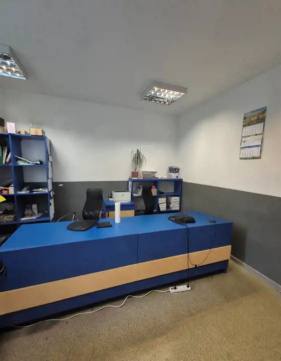 Na hali został wydzielony pokój biurowy, zaplecze socjalne, sanitarne.