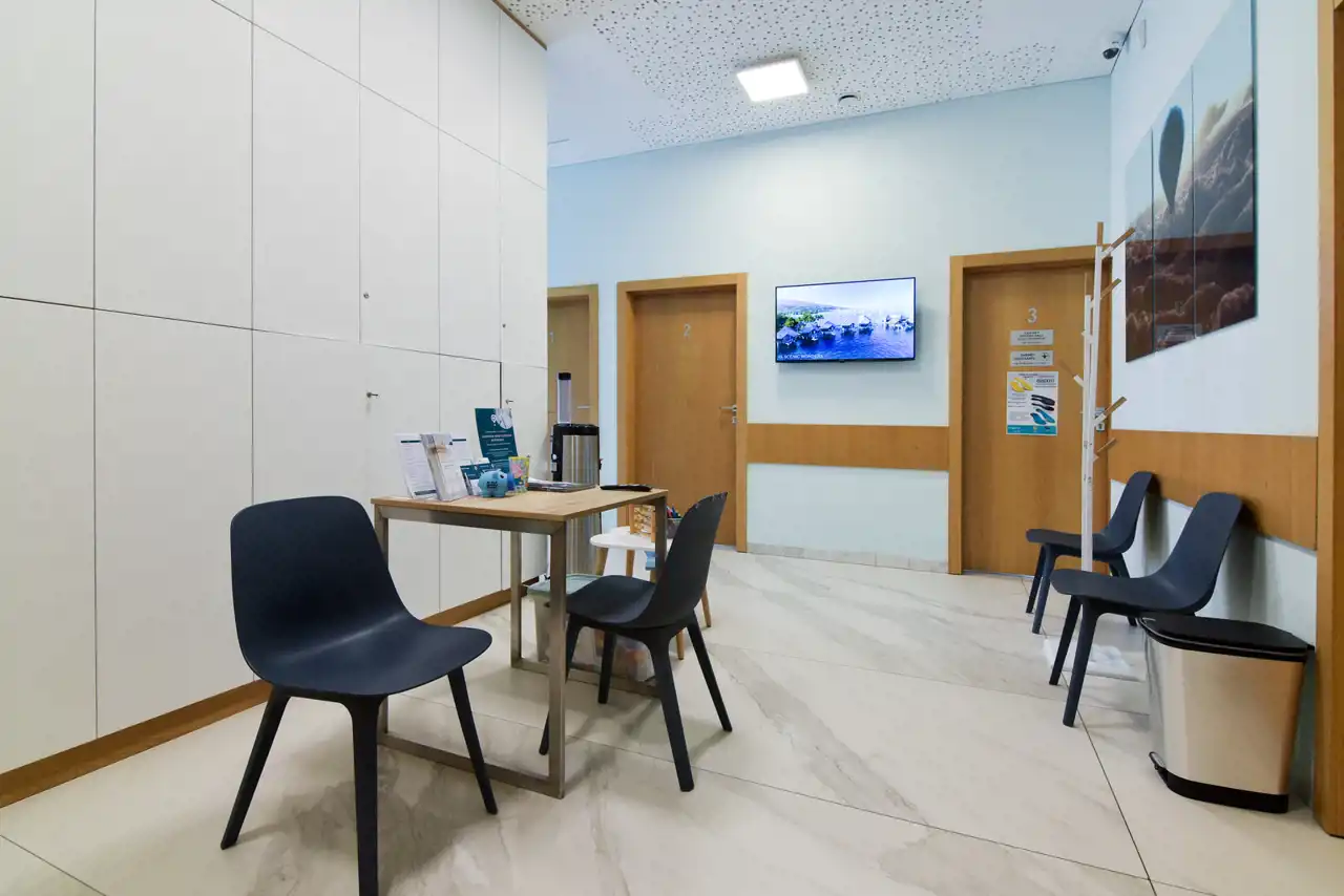 Dodatkowo recepcja z poczekalnią oraz zaplecze sanitarne i socjalne.