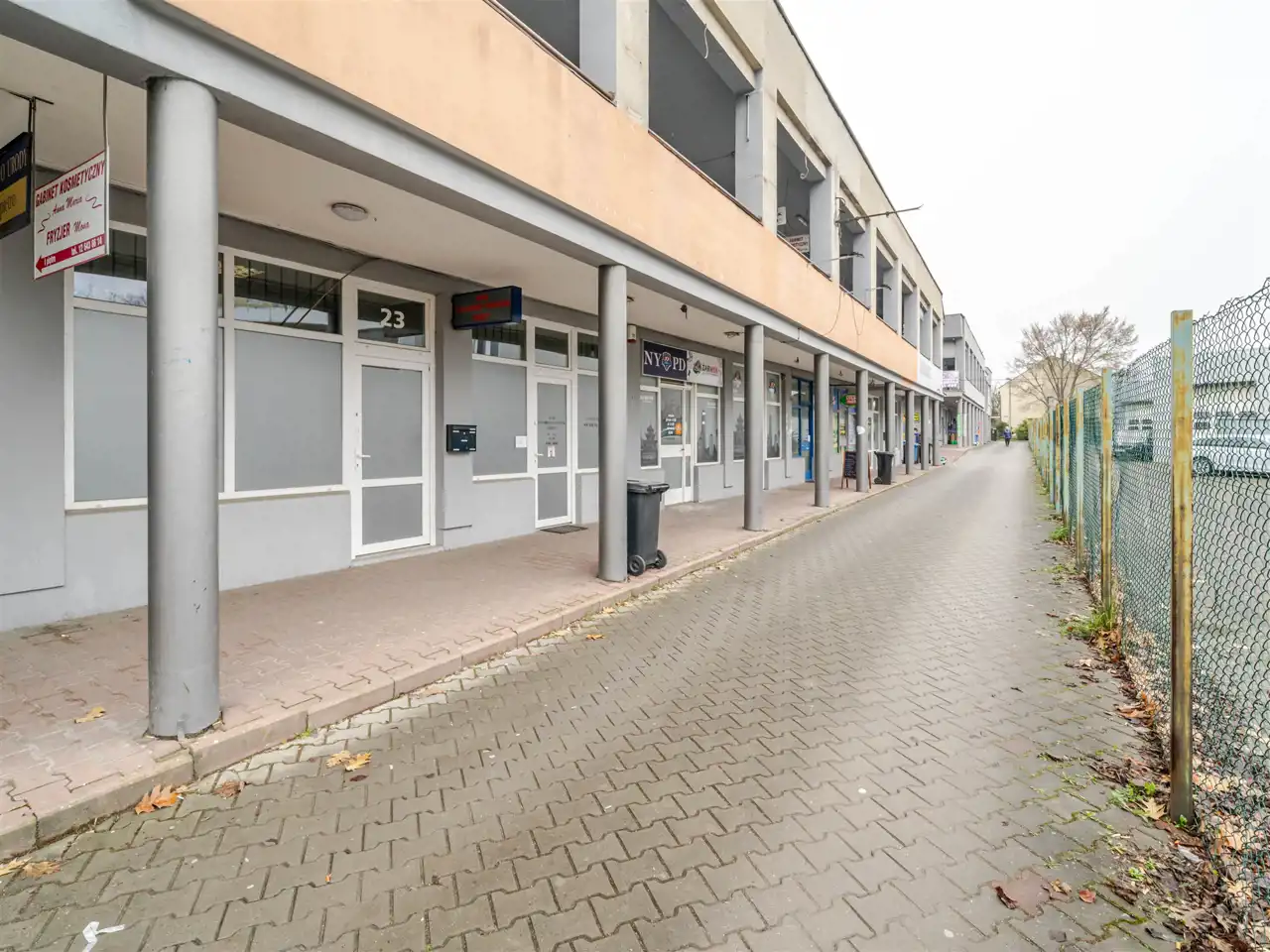 Parterowy lokal w prywatnym kompleksie handlowym gwarantuje klientom bezproblemowy wjazd i parkowanie. Wnętrze obejmuje 3 przestronne pomieszczenia oraz pełnowymiarowy sanitariat. Możliwość łatwej adaptacji na dwa funkcjonalne pomieszczenia: główne 33 m² (z witrynami) i zaplecze 10 m² – idealne pod showroom, biuro czy warsztat.