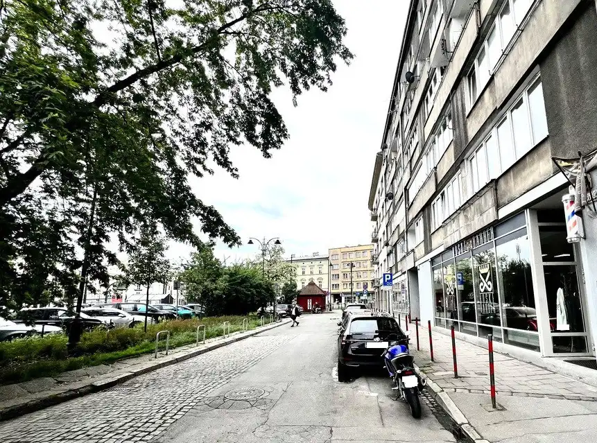 - Parking: Możliwość parkowania w pobliżu budynku.
