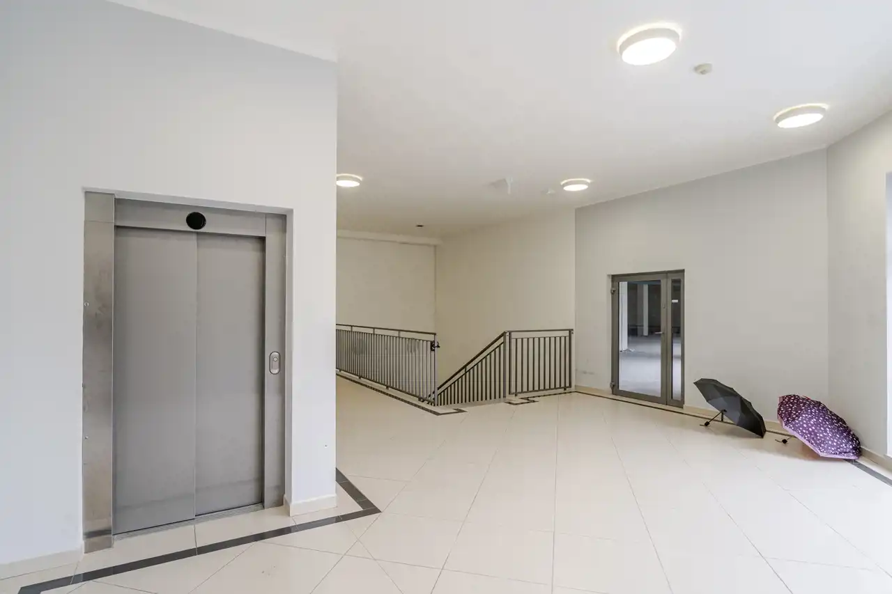 z reprezentacyjnej klatki schodowej z windą, współdzielonej z innymi lokalami usługowymi
