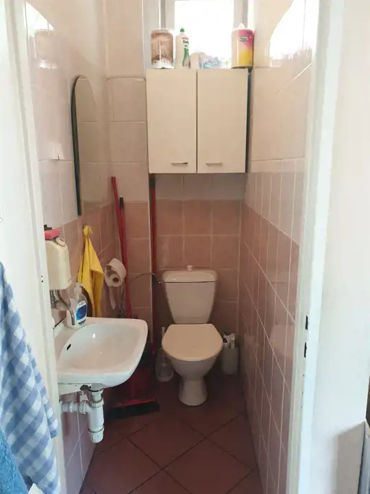 W lokalu jest węzeł sanitarny i dwie sale usługowe - handlowe .