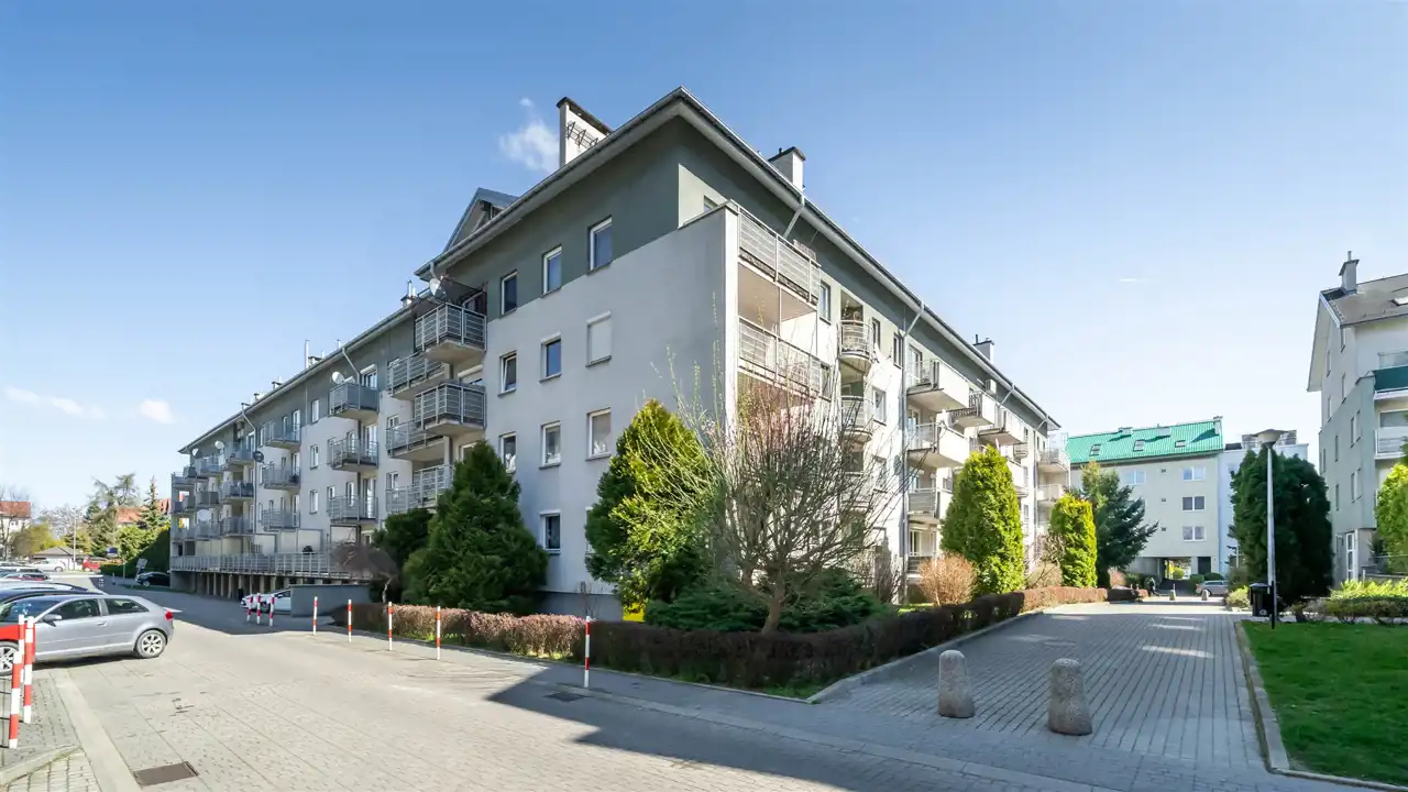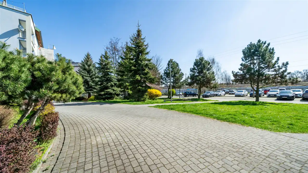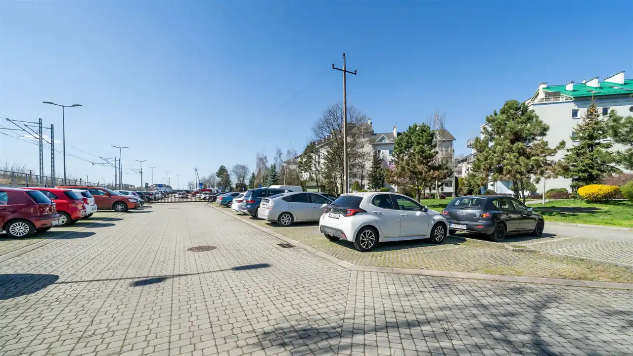 Przy bloku znajduje się duży parking, wjazd chroniony szlabanem, otwierany za pomocą pilota lub telefonu.