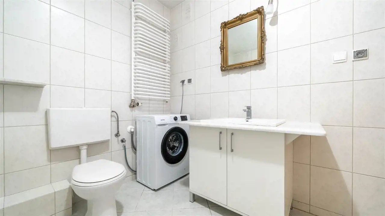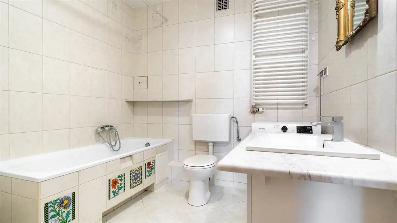 - łazienki z wc, z wanną, pralką, w ponadczasowej jasnej kolorystyce,