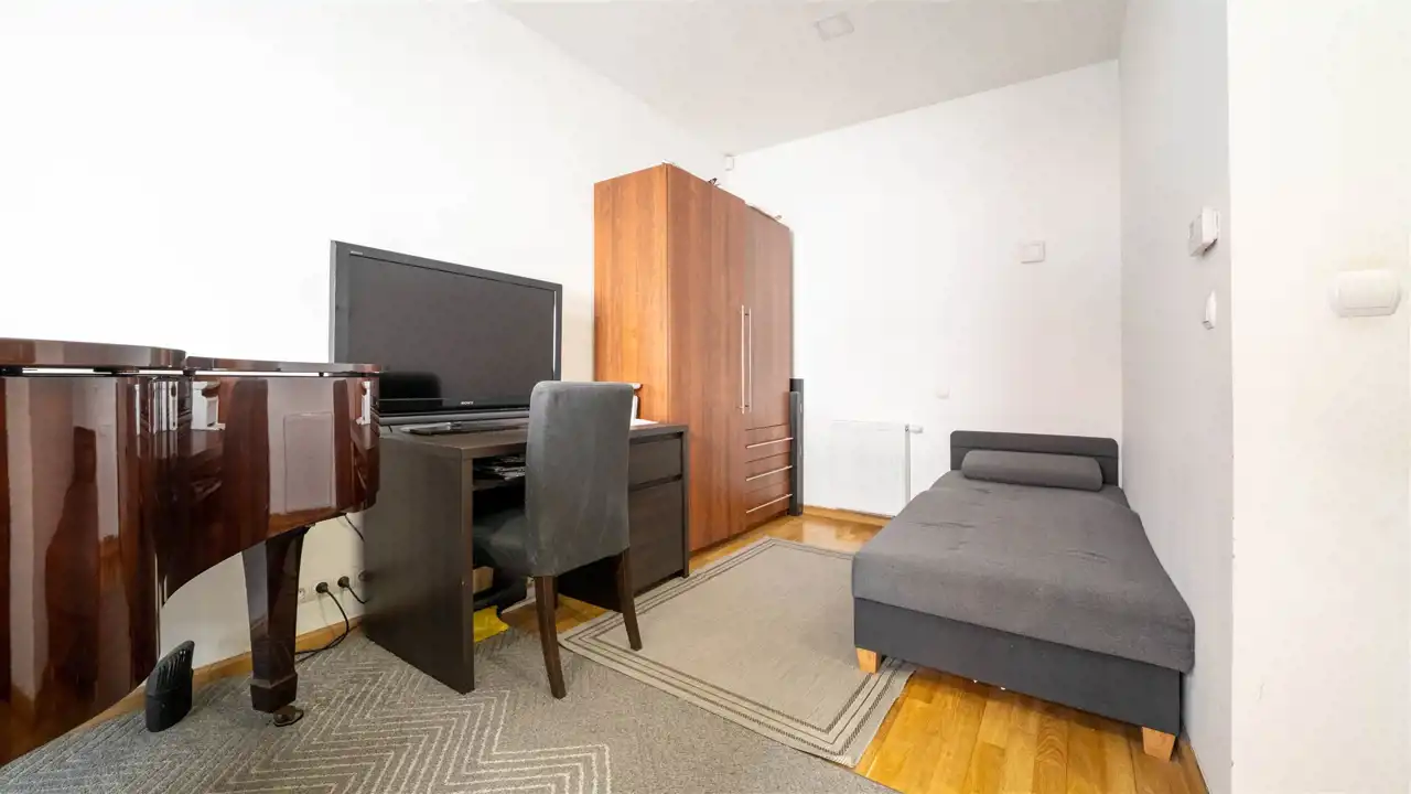 Składa się ono z pokoju, kuchni z jadalnią, przedpokoju oraz osobnej łazienki i toalety.