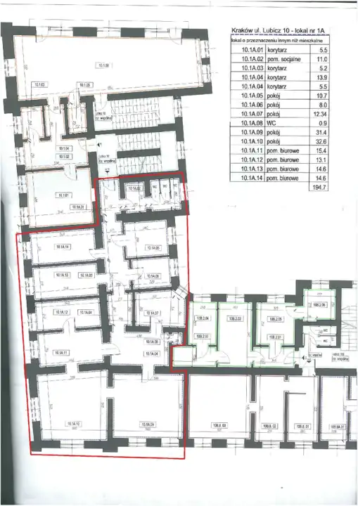 Pomieszczenia o pow. od 10m2 do 30m2 stanowią łączną powierzchnie 194m2 z możliwością rozszerzenia o sąsiadujące pomieszczenia do ponad 300m2.