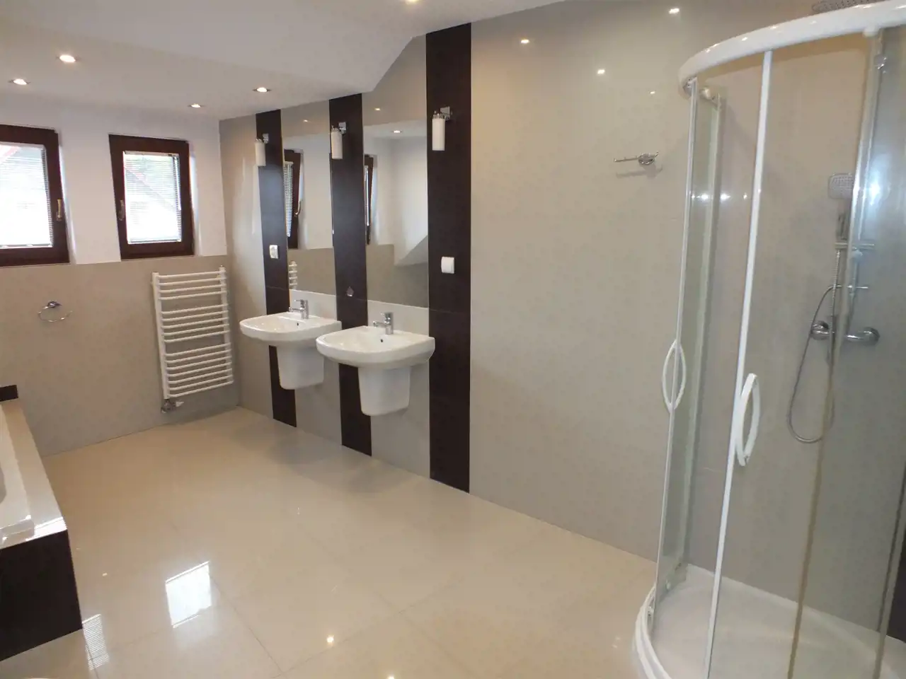 - duża łazienka z kabiną prysznicową i wanną