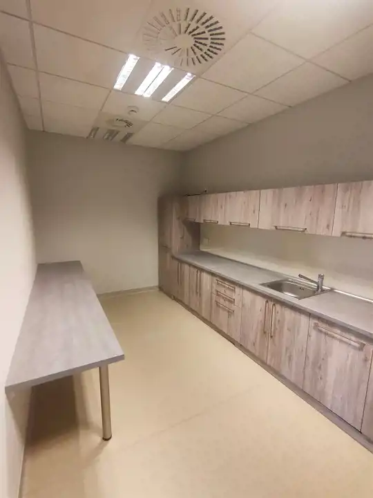 Lokal składa się z: recepcji, powierzchni open space, sali konferencyjnej, serwerowni, garderoby i aneksu kuchennego z jadalnią. Na piętrze dostępne toalety.