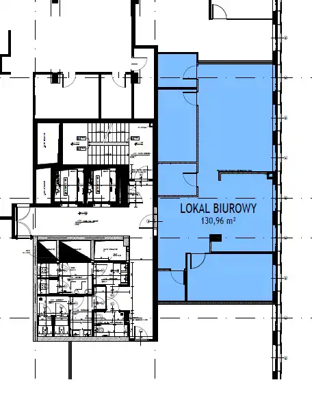 Do wynajęcia lokal biurowy o pow. całkowitej wynoszącej 152,32m2 i pow. użytkowej wynoszącej 130,96m2 usytuowany na II piętrze w jednym z reprezentacyjnych biurowców w okolicy ul. Pilotów.