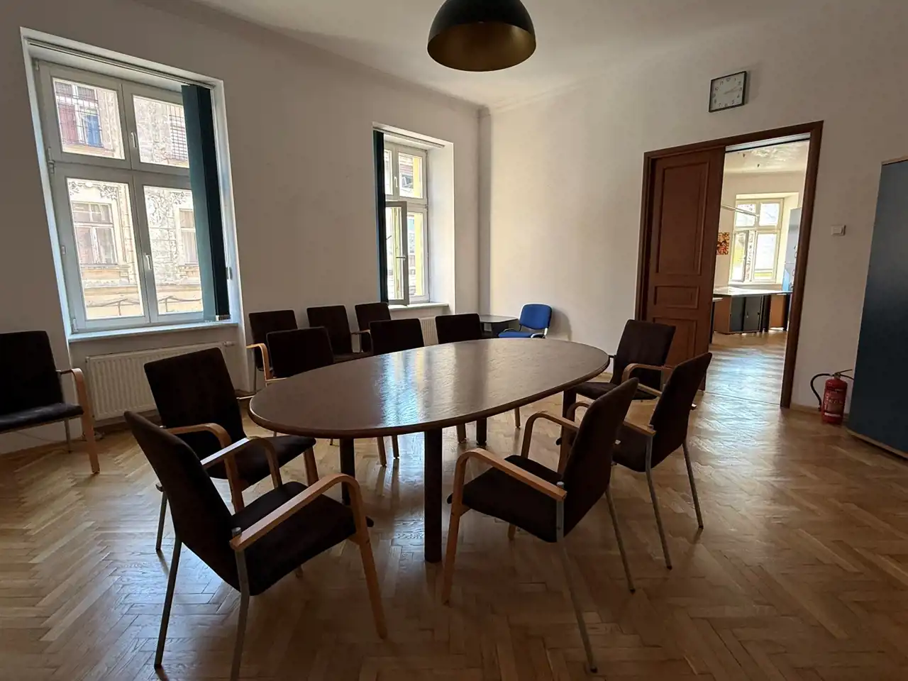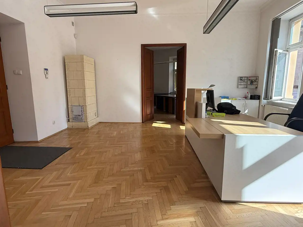Znajduje się na 1-szym piętrze eleganckiej, reprezentacyjnej kamienicy.
