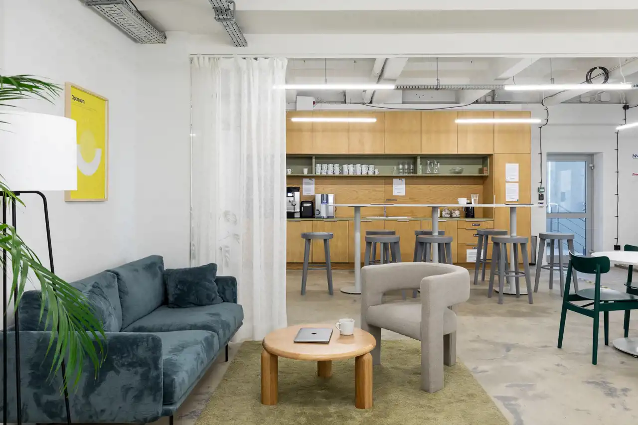 - Powierzchnia biurowa wyposażona w biurka i fotele
