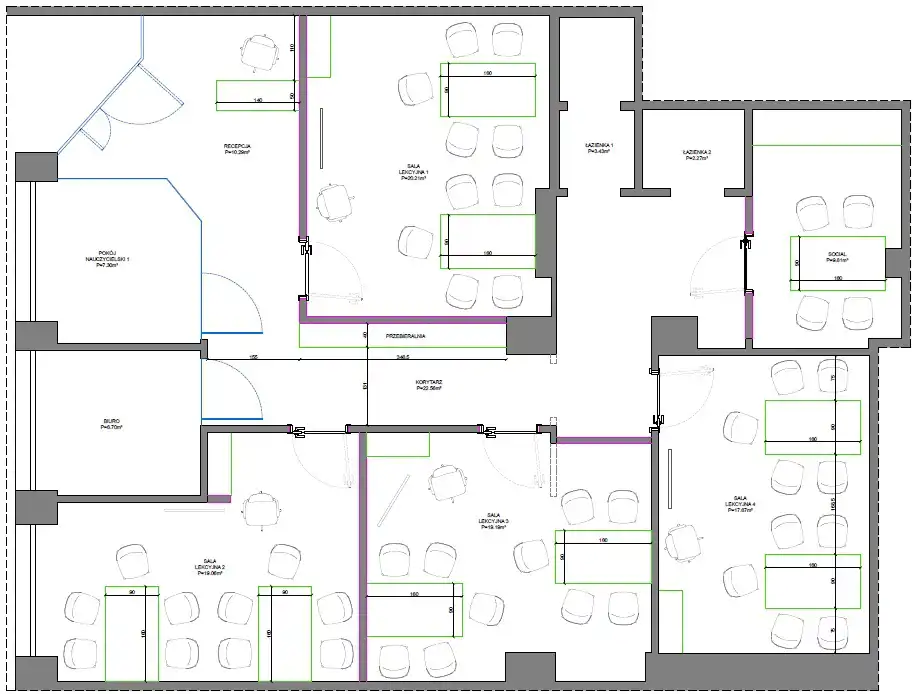 -4 niezależne sale, 2 biura i przestronny hol,