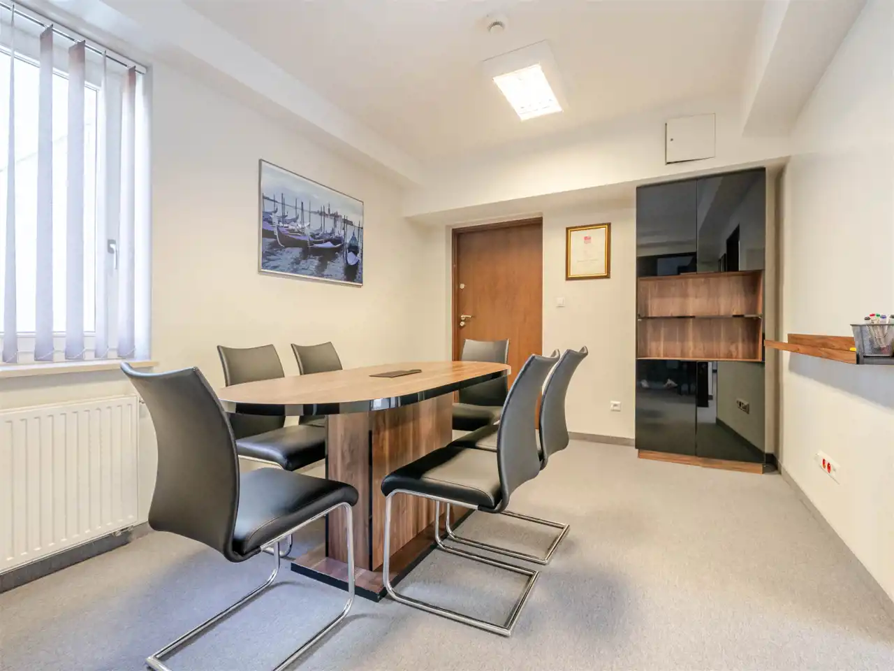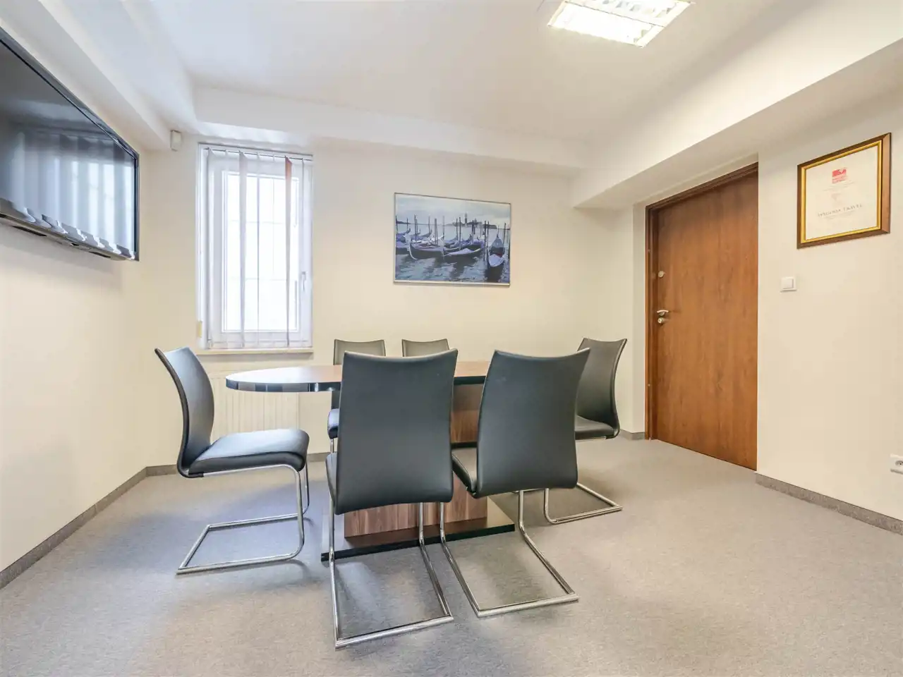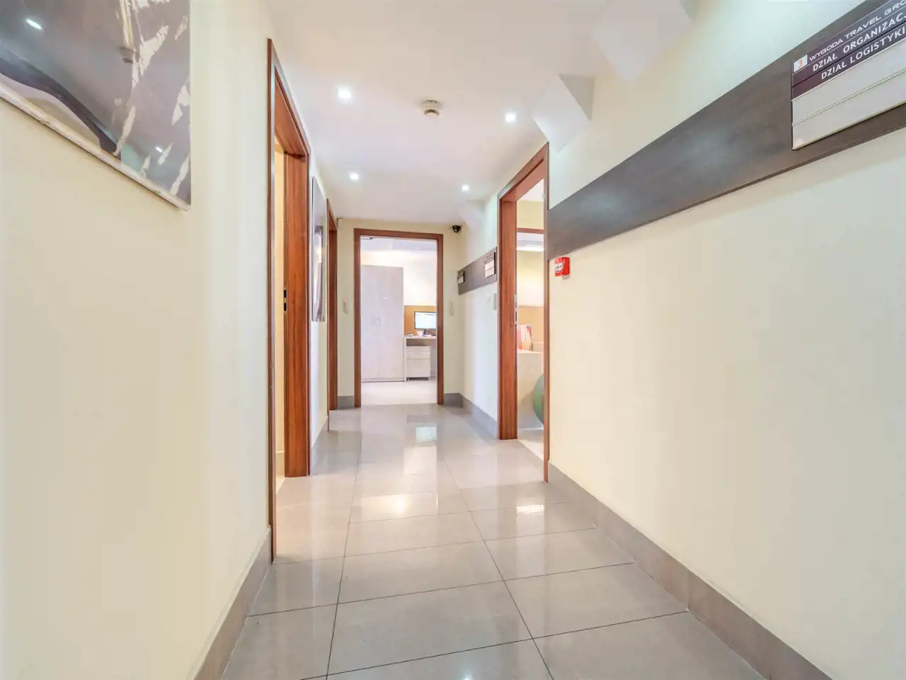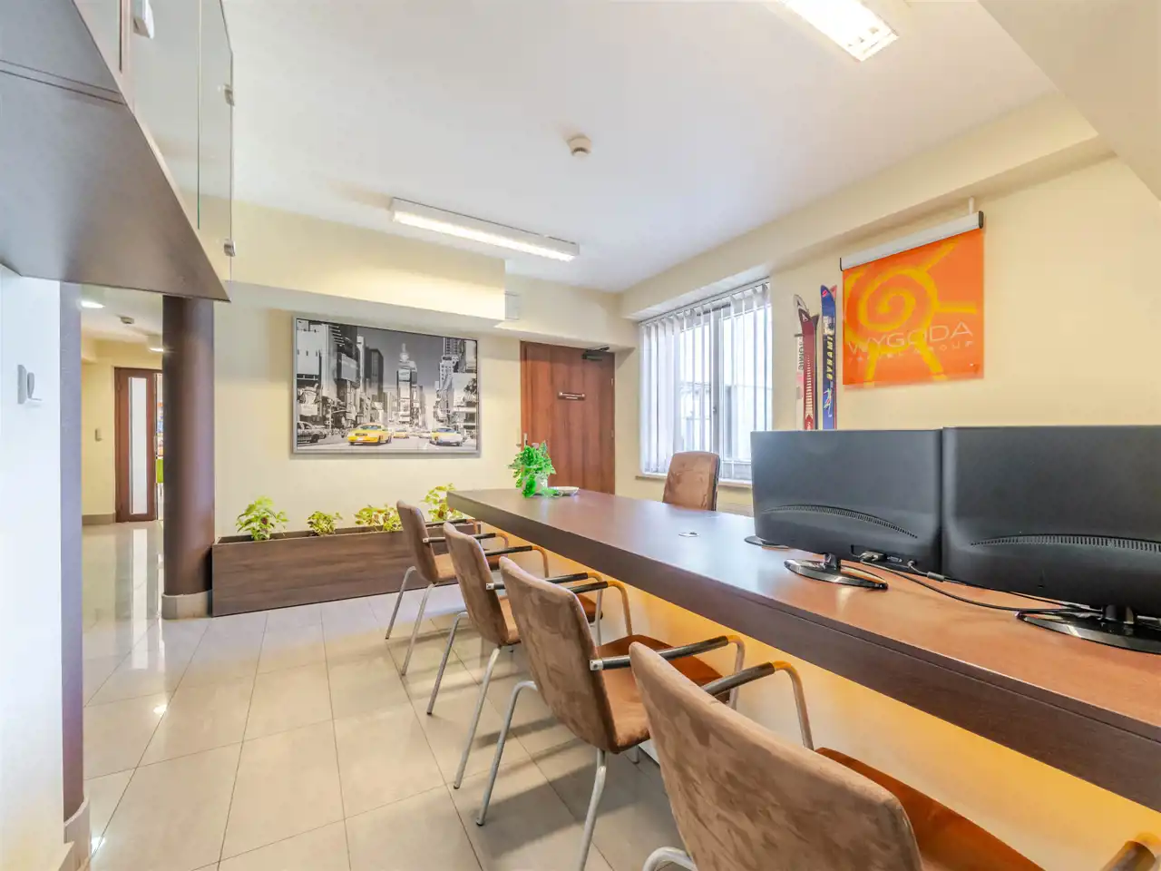 recepcja, 2 sale konferencyjne,8 wydzielonych pomieszczeń biurowych