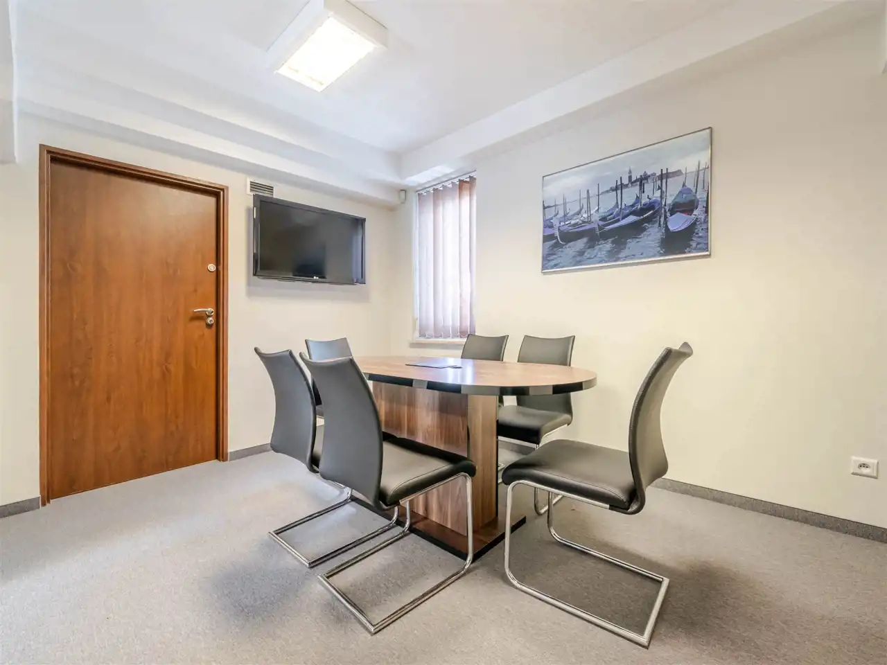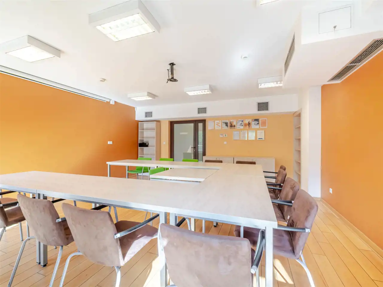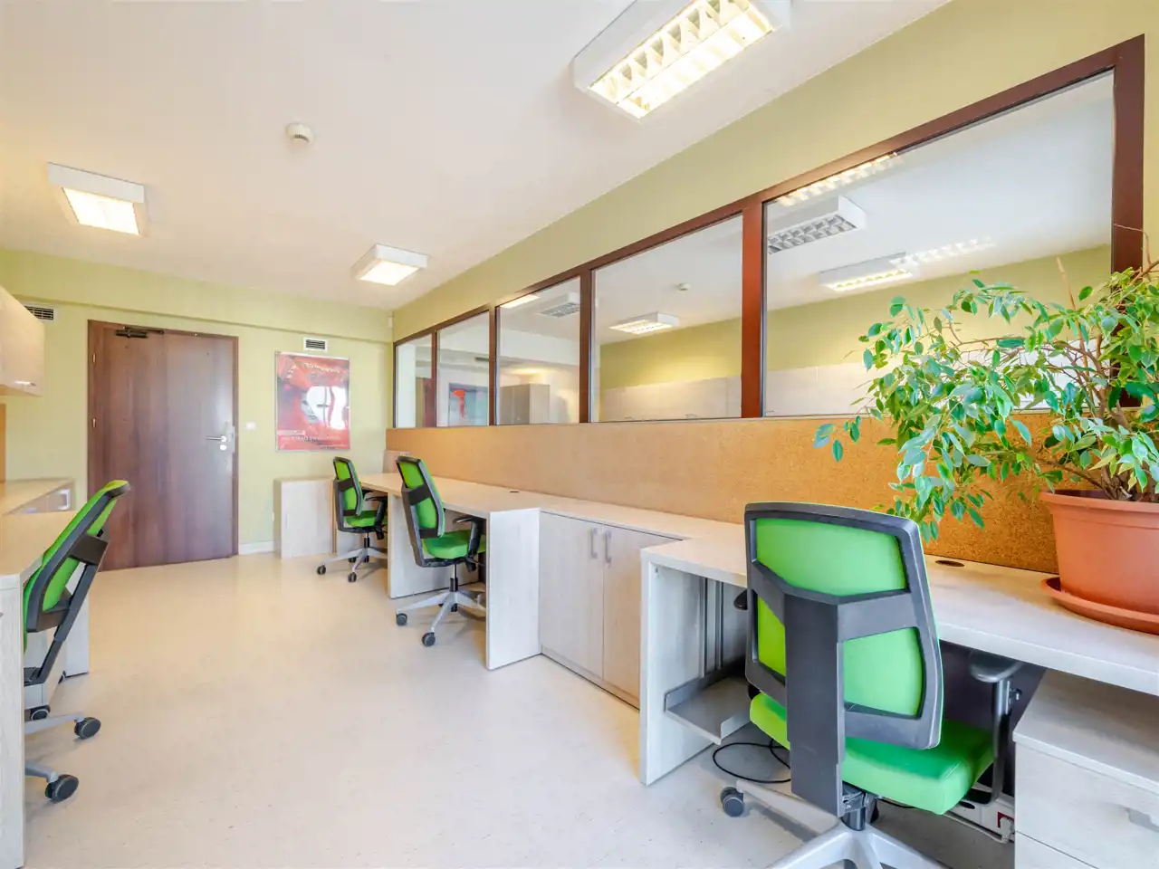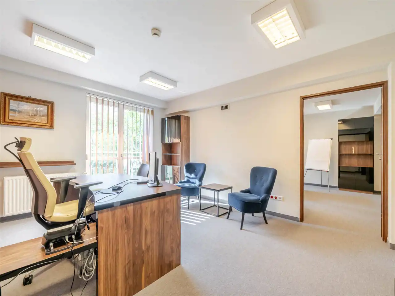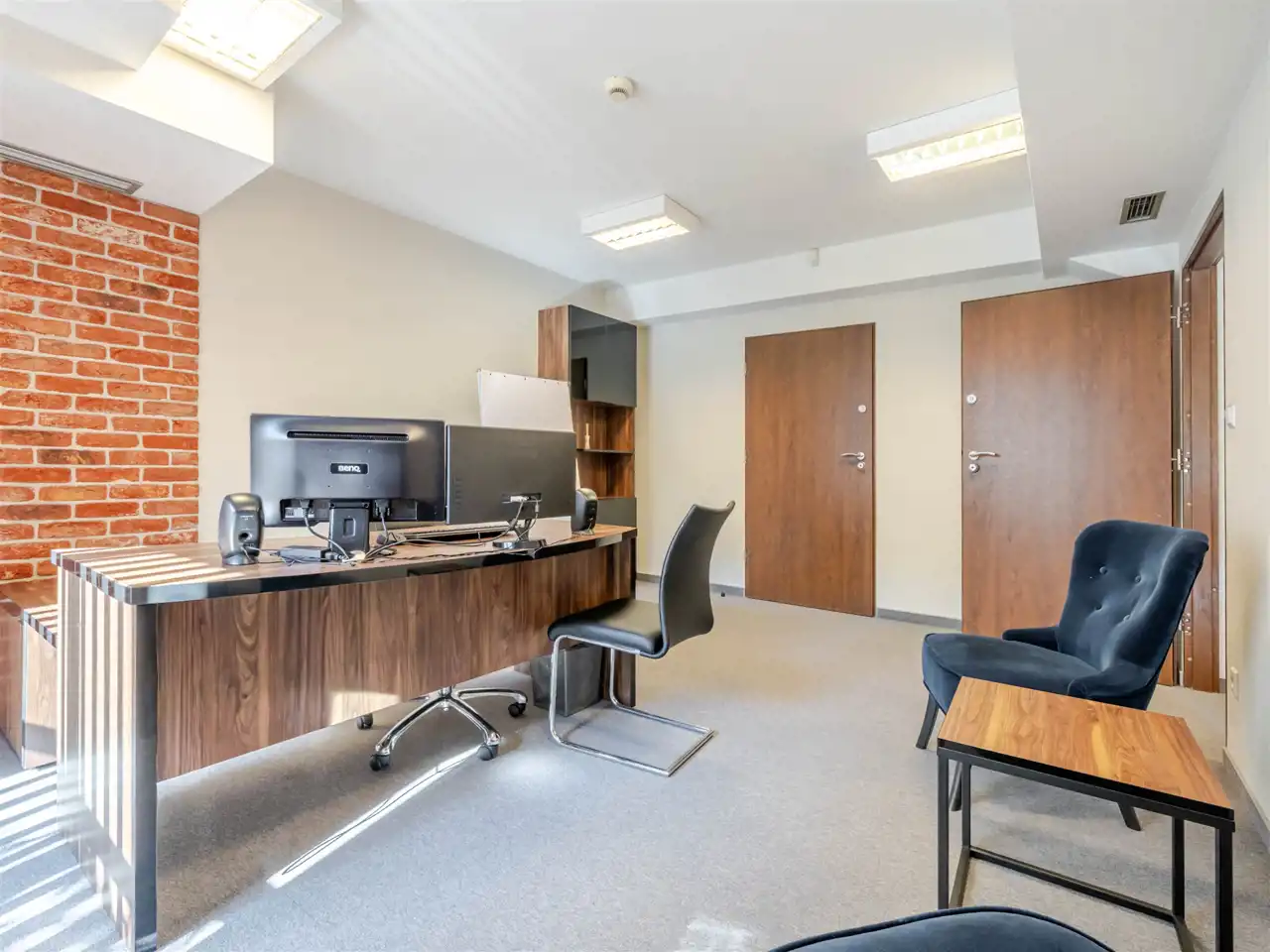 recepcja, 2 sale konferencyjne,8 wydzielonych pomieszczeń biurowych