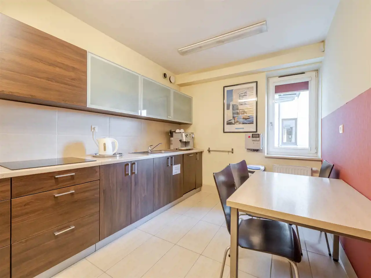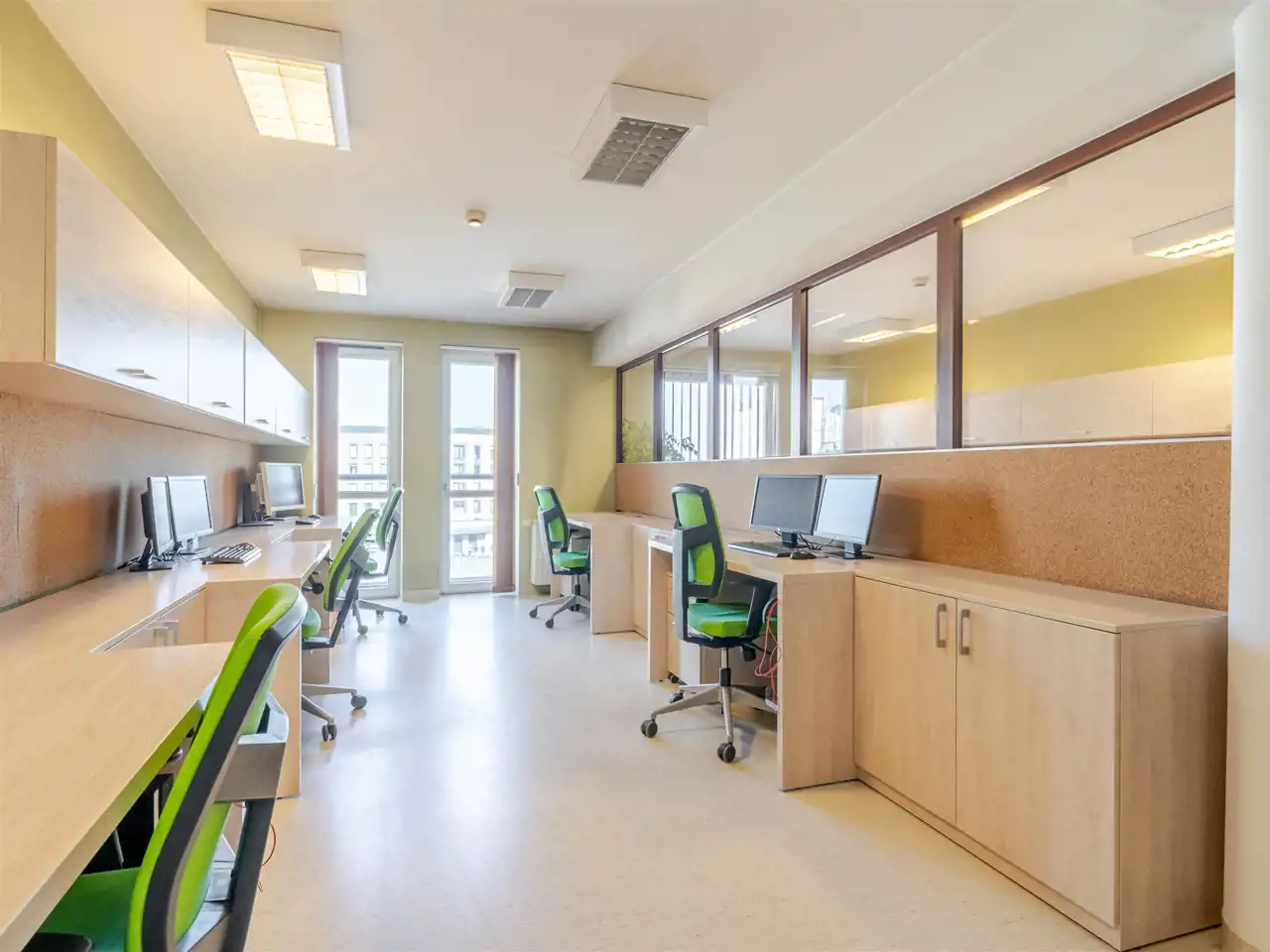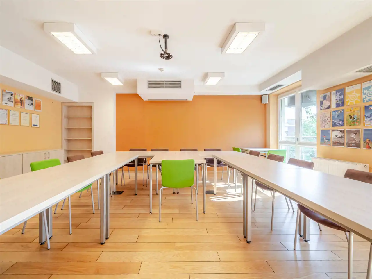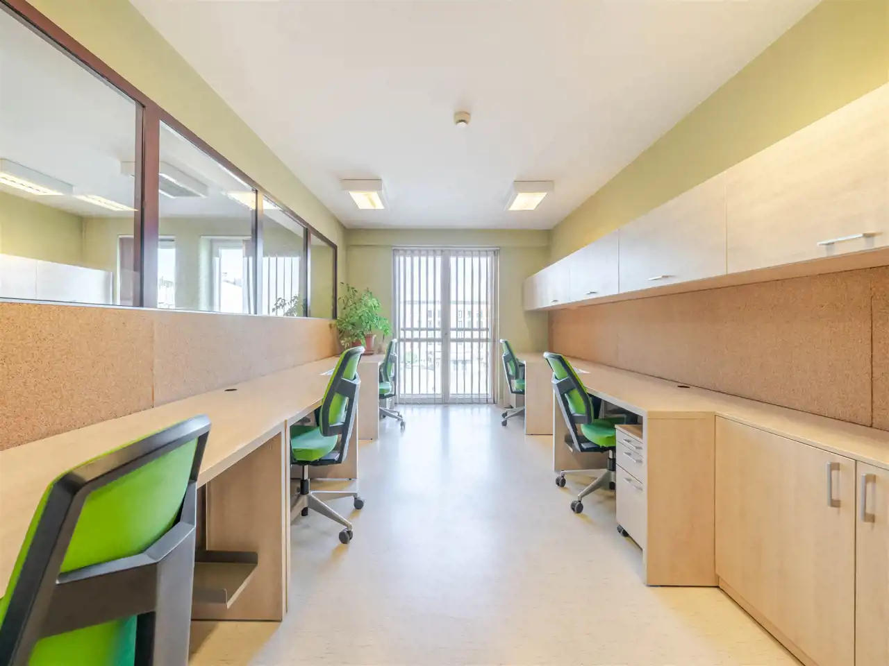recepcja, 2 sale konferencyjne,8 wydzielonych pomieszczeń biurowych