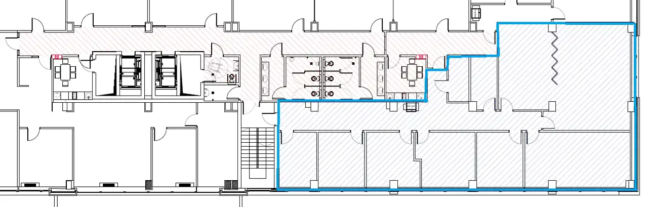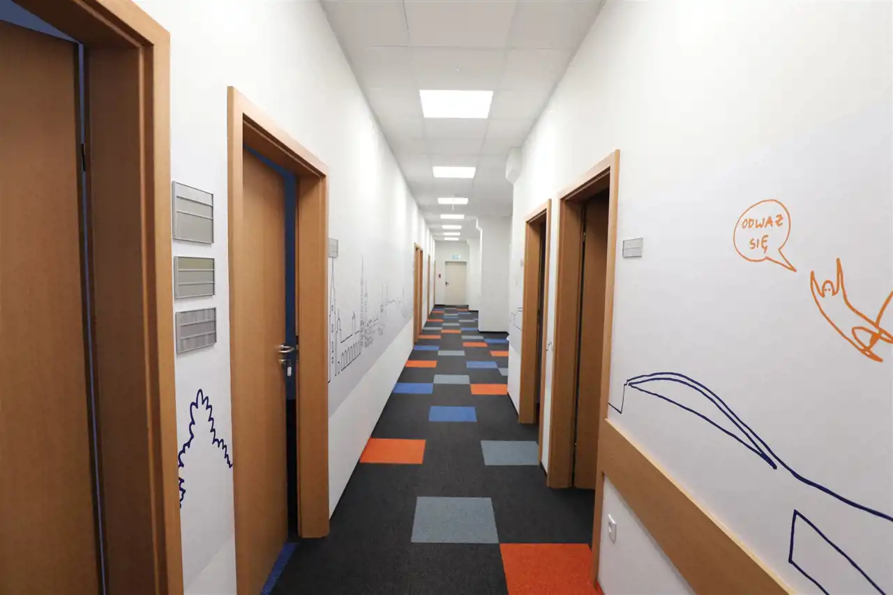 Lokal składa się z: komunikacji, 8 pokoi biurowych (możliwe rozsunięcie ściany pomiędzy dwoma pokojami) oraz serwerowni. Na piętrze dostępny aneks kuchenny oraz toalety.