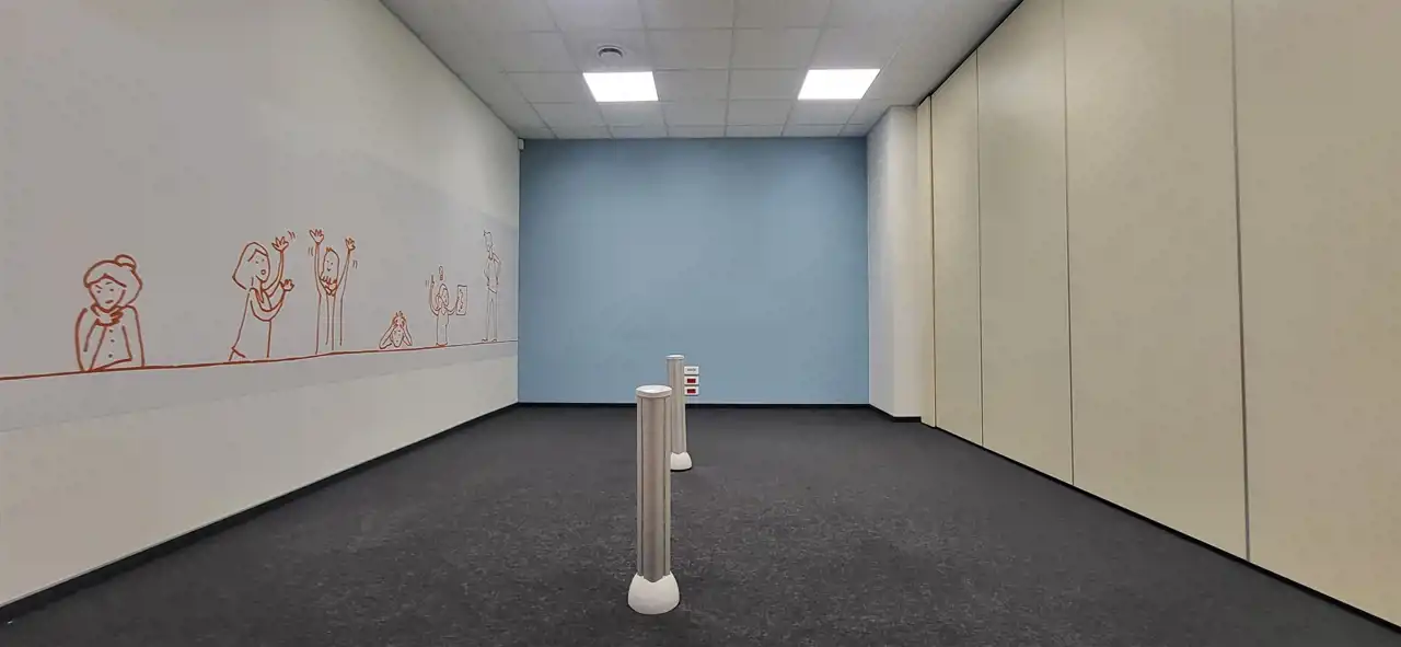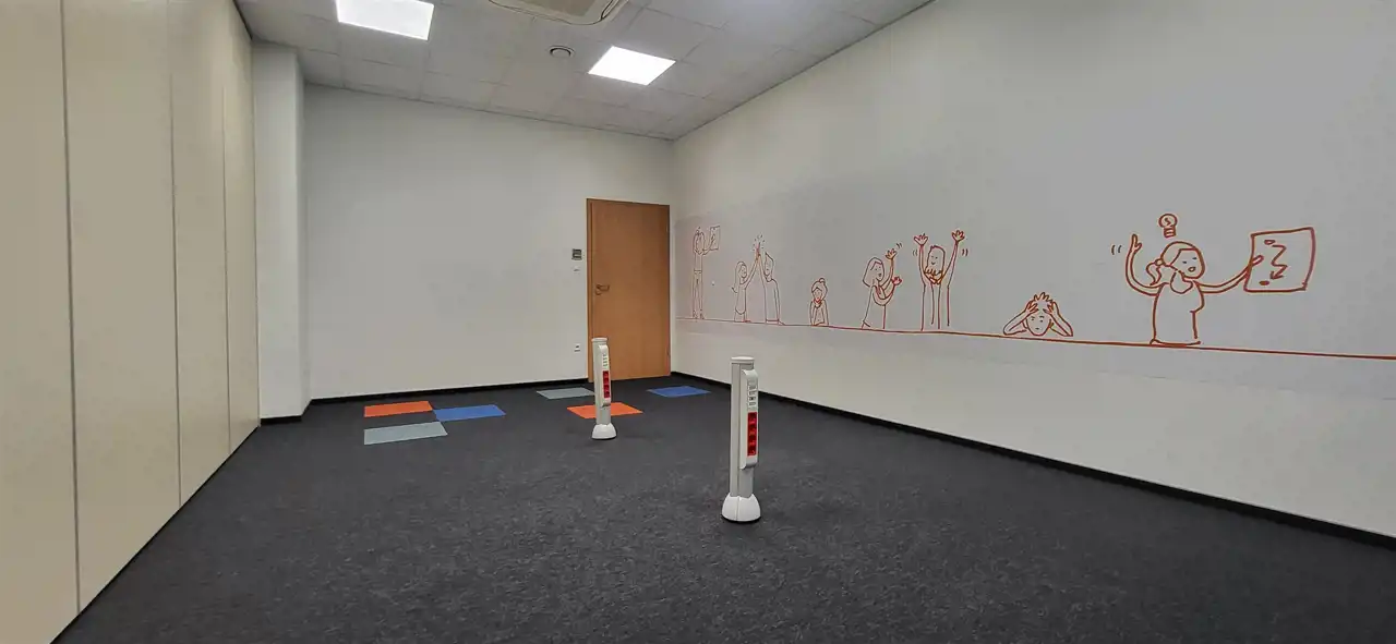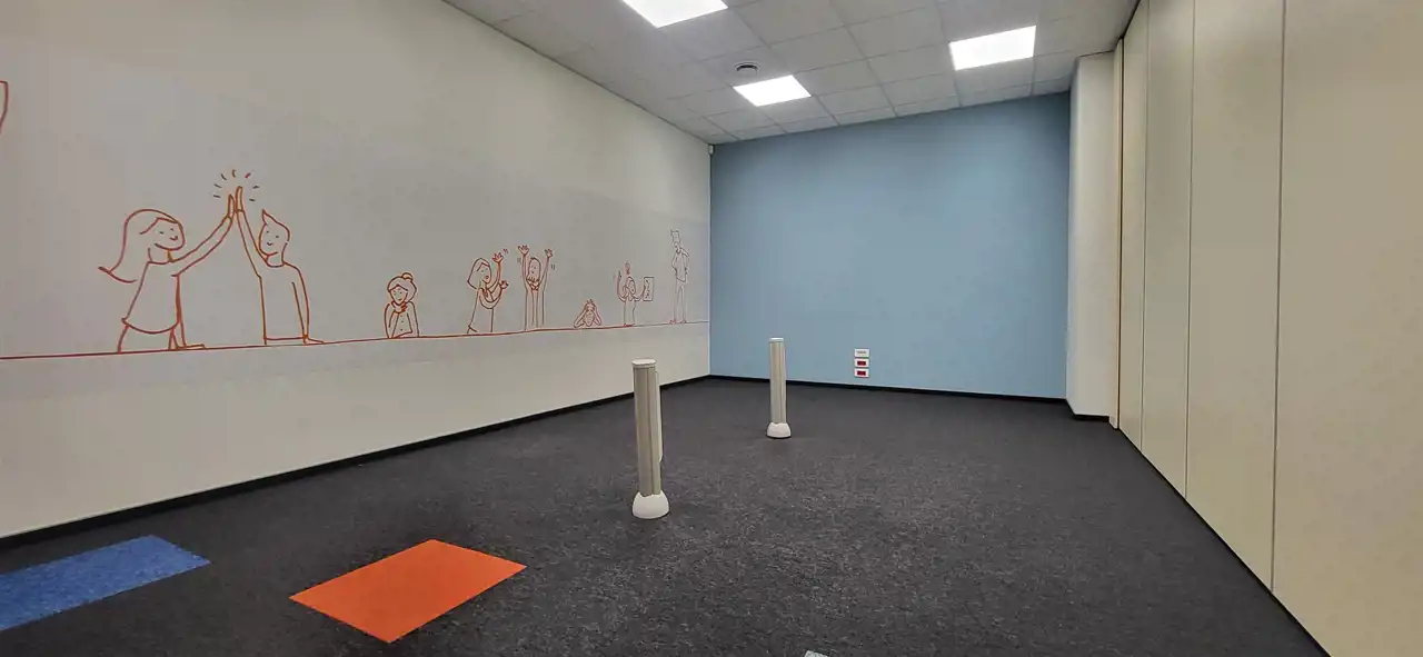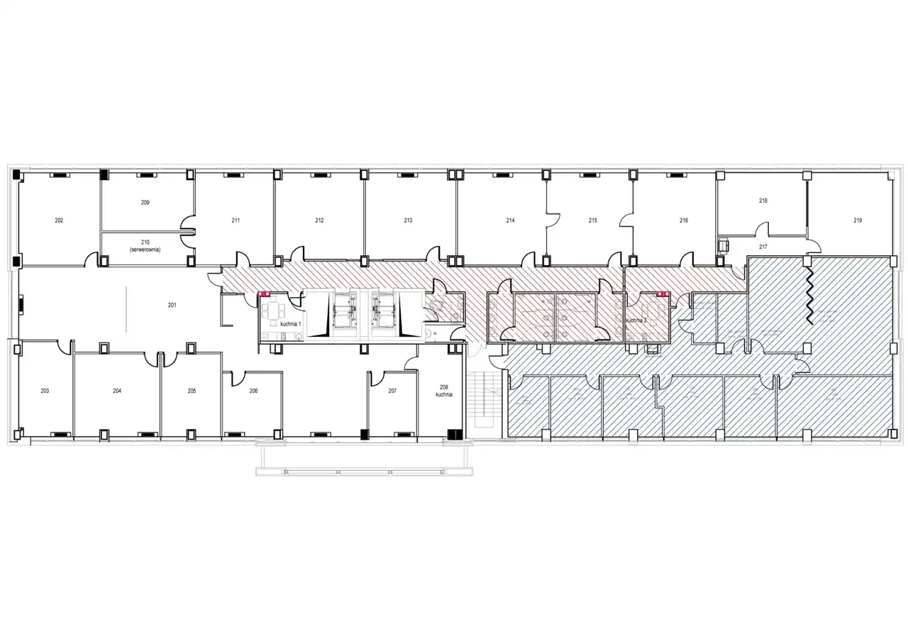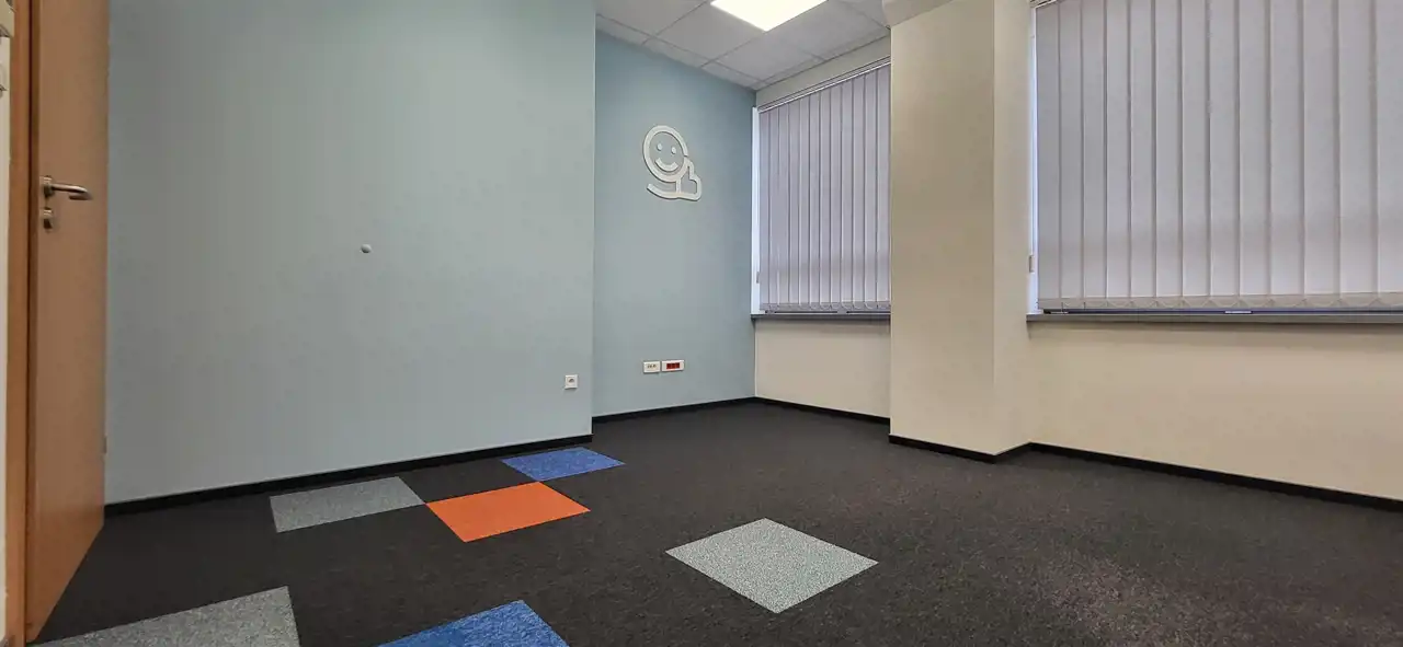 - 7 oddzielnych pokoi biurowych, w tym jeden największy pokój ma możliwość przedzielenia ścianką mobilną i uzyskania dodatkowej sali konferencyjnej.