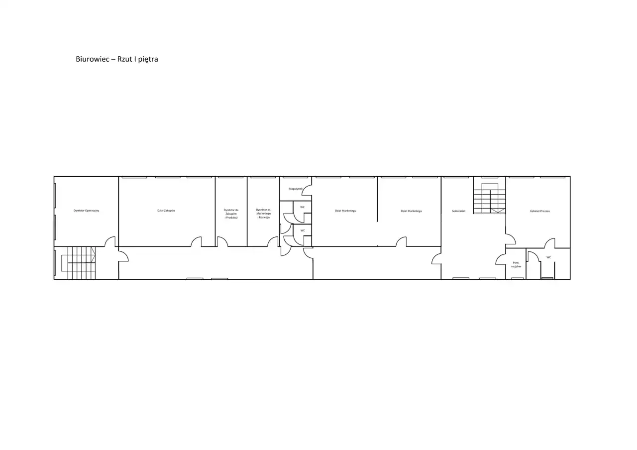 Lokal biurowy o powierzchni 361,00m2 znajduje się na I piętrze. Składa się z: