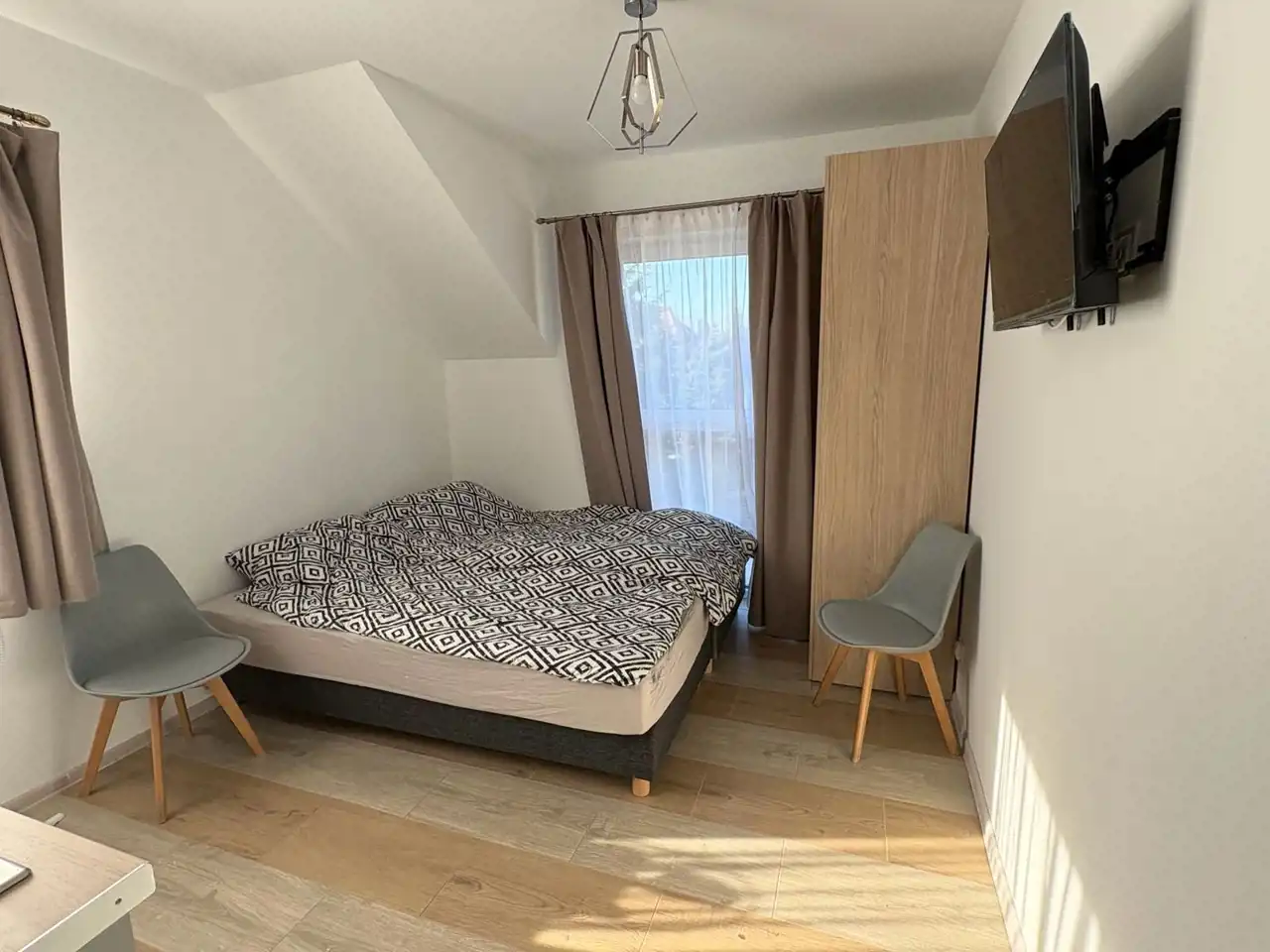 Do wynajęcia piętro budynku składające się z nowych 5 większych apartamentów o powierzchni około 30m2 i 6 mniejszych o metrażu około 18m2. Wszystkie pokoje są w pełni umeblowane.