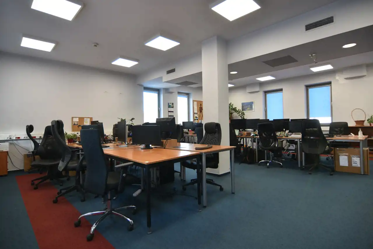 Budynek w standardzie klasy B+, w pomieszczeniach biurowych wykładzina w korytarzu gresy, oświetlenie z regulacją natężenia światła, zabudowany aneks kuchenny.