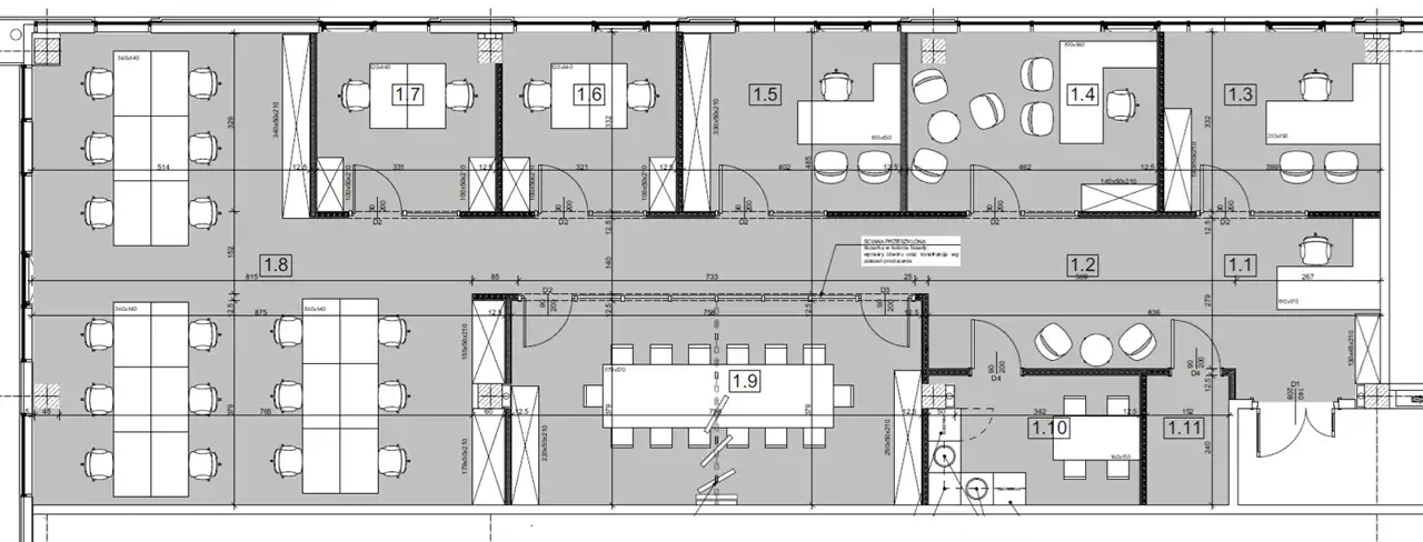 Większość umeblowania widocznego na zdjęciach jest na wyposażeniu lokalu (biurka z open space należą do najemcy).