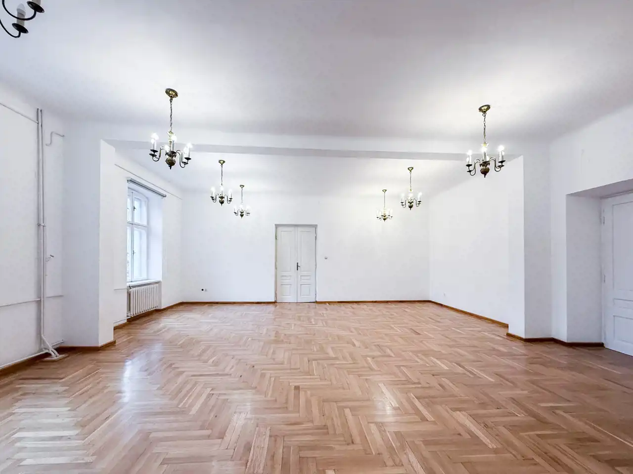 Lokal znajduje się na II piętrze i ma powierzchnię 210 m2.