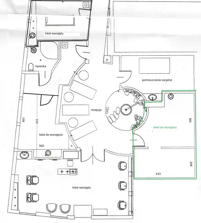 Do lokalu przynależy piękna recepcja, łazienka, pomieszczenie socjalne.