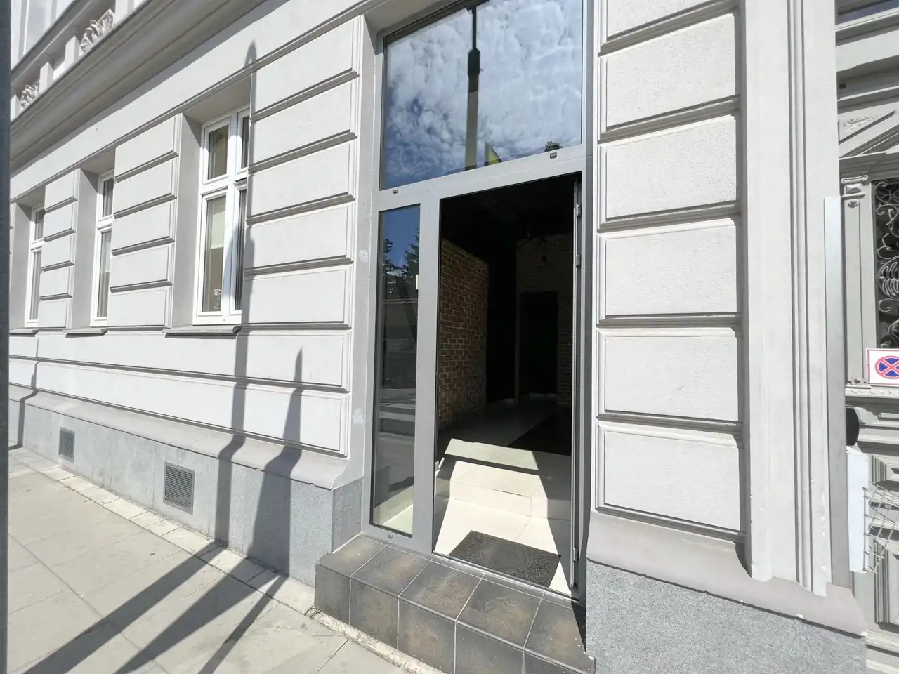 Lokal frontowy, z przeszklonym wejściem na parterze wyremontowanej kamienicy o powierzchni 14 m2 składa się z sali sprzedaży oraz toalety (razem ok 12 m2) oraz schowka - magazynu o powierzchni ok 2 m2.