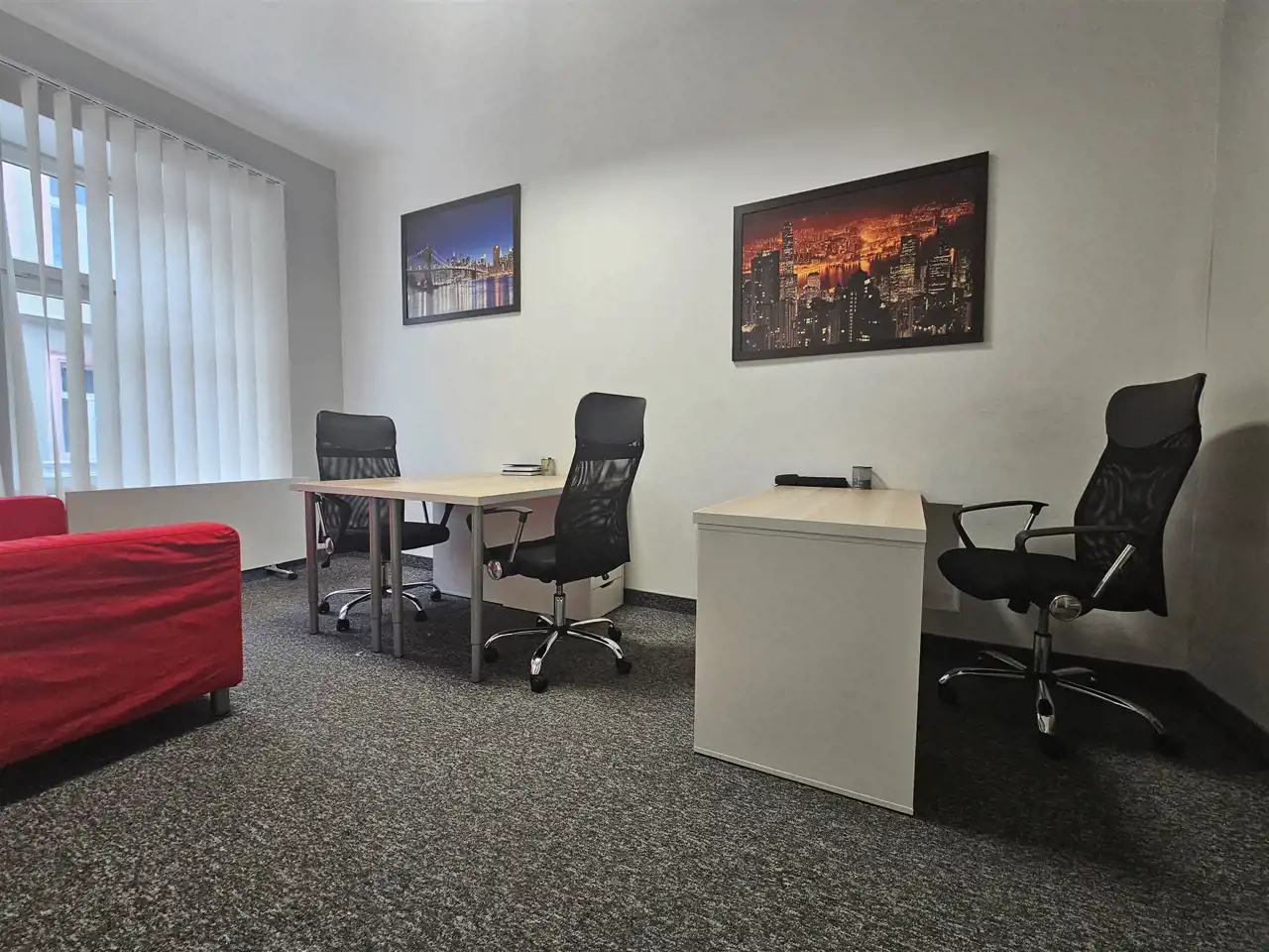 - trzy pokoje biurowe