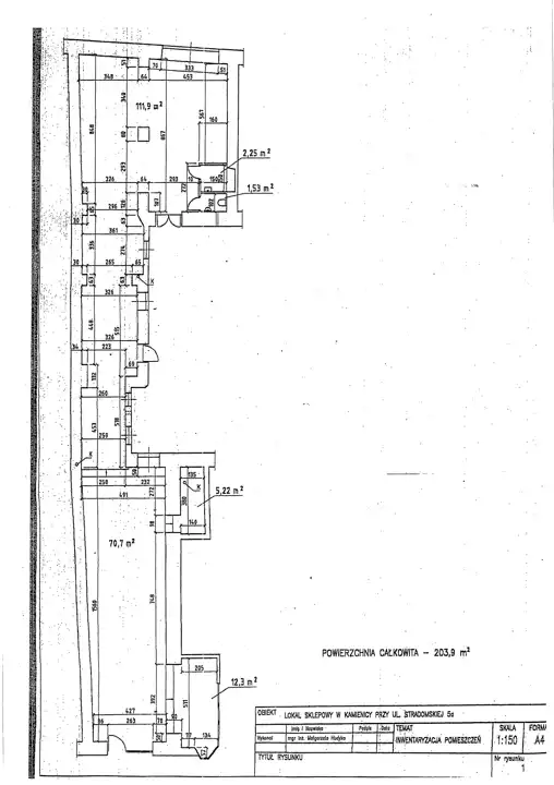 Liczy 203,9m2 i znajduje się na parterze w kamienicy. Wejście od ulicy z witryną. Na tę powierzchnię składają się: