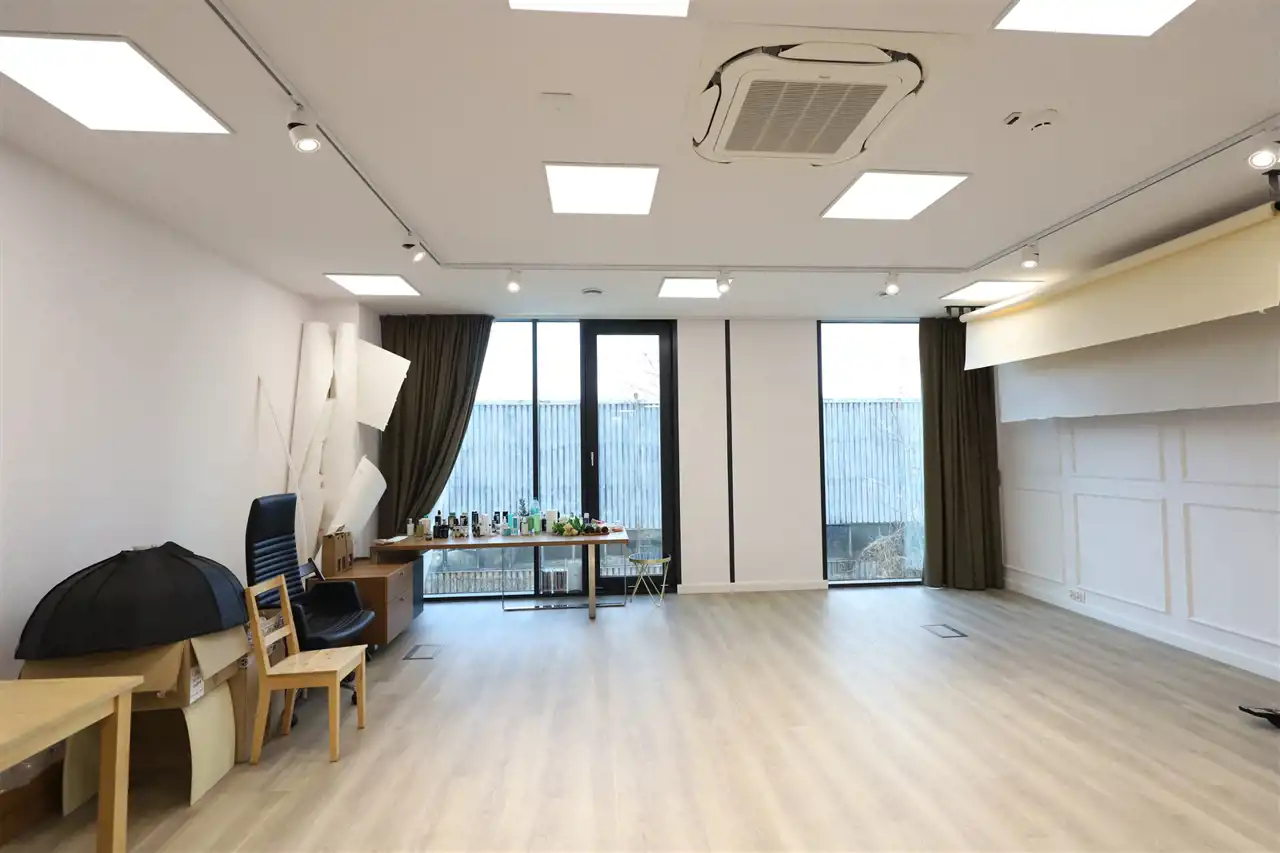 Lokal wykończony w wysokim standardzie z materiałów najwyższej jakości oraz przystosowany pod profesjonalne studio fotograficzne. Na podłodze wysokiej jakości panele, ściany pomalowane na biało częściowo wyłożone panelami. W oknach firanki oraz zasłony typu blackout, zainstalowane zostało automatyczne tło fotograficzne. Dodatkowo wykonana została imitacja komunika oraz zawisło nad nią lustro.