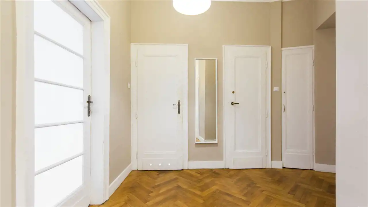 Na podłodze zachowany oryginalny parkiet oraz odnowiona stolarka drzwiowa. Lokal w stanie do wejścia najchętniej dla spokojnego najemcy biurowego.