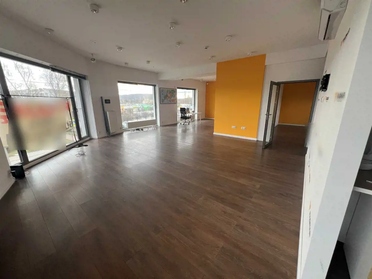 Do wynajęcia lokal 102m2 na pierwszym piętrze w budynku biurowo-usługowym. Lokal składa się z powierzchni open space, jednego gabinetu, korytarza, zaplecza socjalnego i toalety.