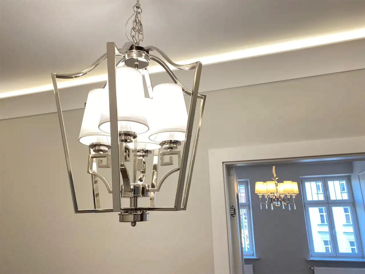 oświetlanie i sufit: podświetlane półki sufitowe led w przedpokoju + oświetlenie ledowe + designerskie lampy w przedpokoju + 1 pokój.