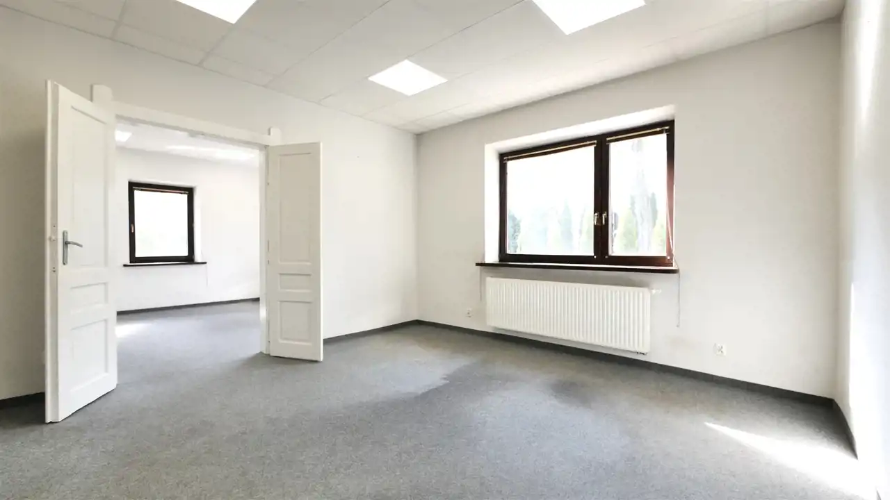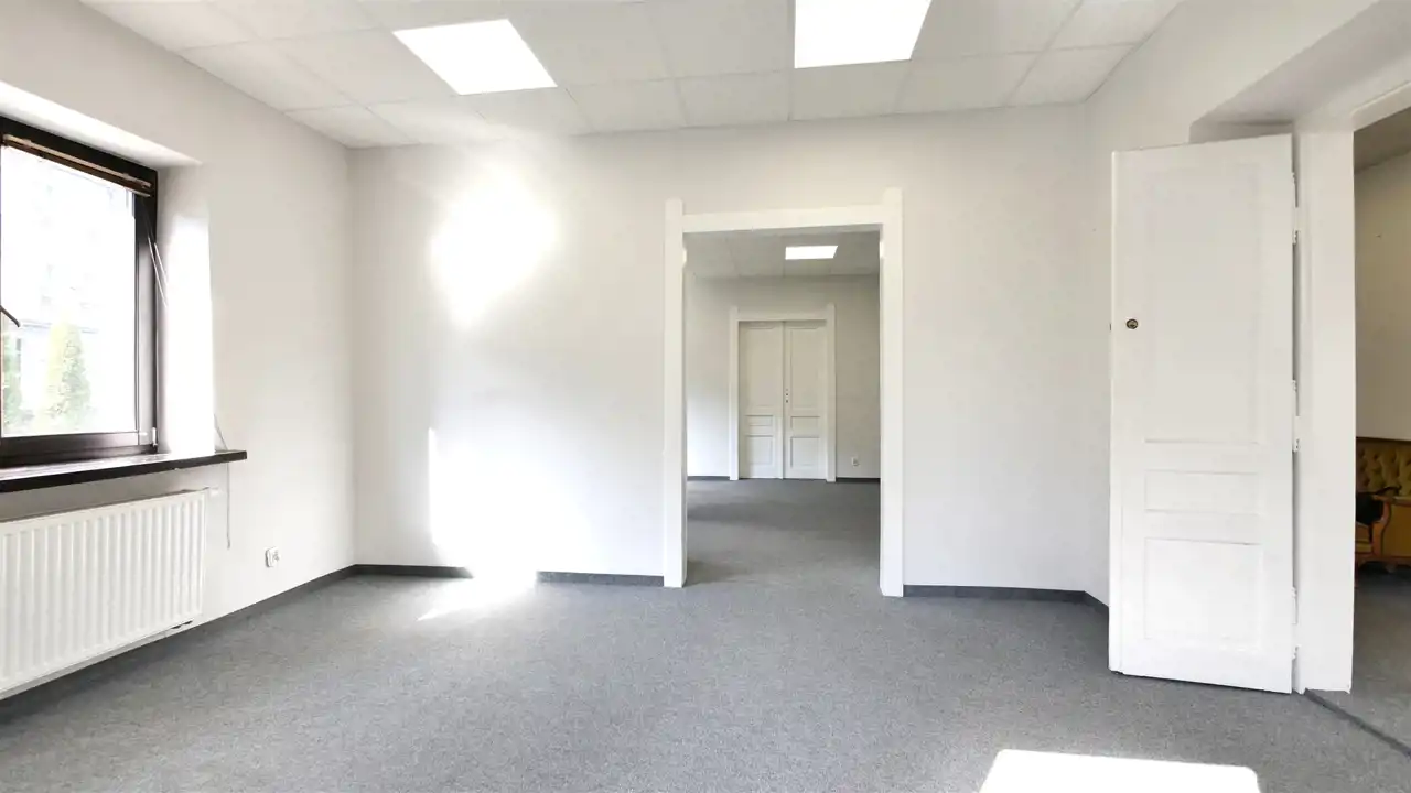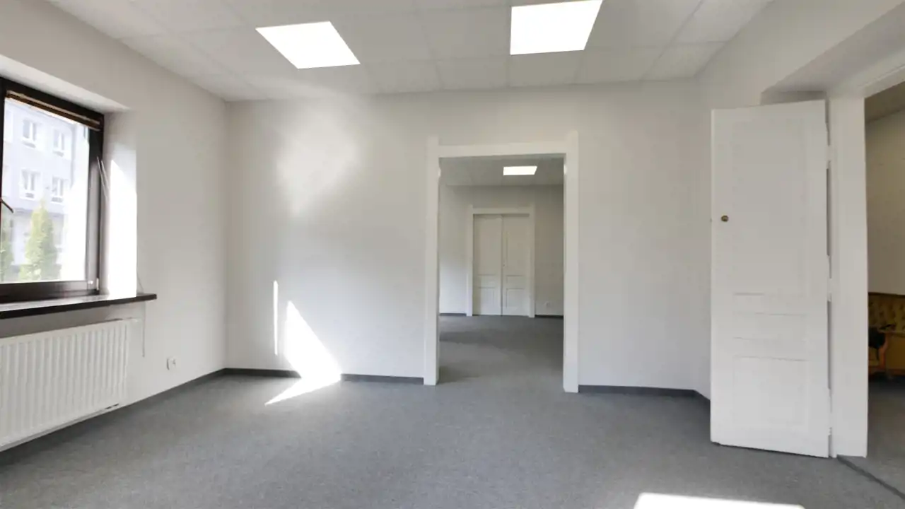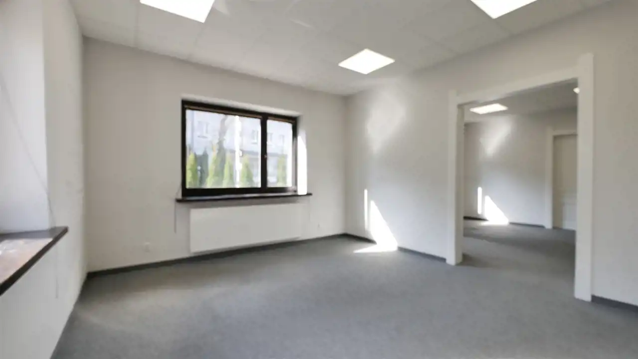 Lokal składa się z pięciu funkcjonalnych pomieszczeń, z których część połączona jest drzwiami przejściowymi, co zapewnia wygodną komunikację i elastyczność aranżacji. Wnętrze uzupełnia przestrzeń recepcyjna z przedpokojem oraz toaleta. W części biurowej na podłogach znajduje się parkiet i wykładzina, natomiast w zapleczu gospodarczym płytki. Oświetlenie dostosowane jest do pracy biurowej, w lokalu rozprowadzono instalację internetową oraz dostępny jest światłowód. Ogrzewanie zapewnia piec gazowy dwufunkcyjny zlokalizowany w kuchni.