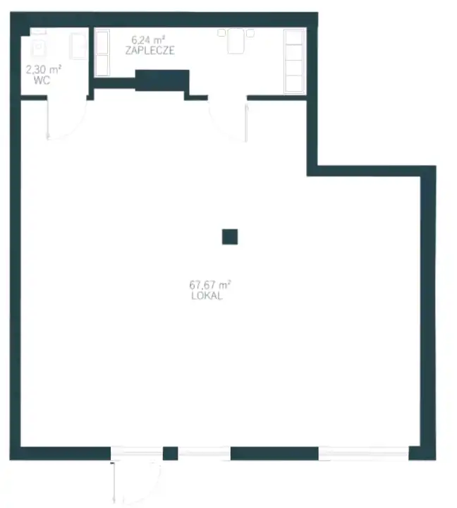 Nowoczesny lokal 76 m2 znajduje się na parterze w budynku mieszkalno-usługowym . Składa się z powierzchni sprzedaży (68m2) z możliwością podziału, zaplecza socjalnego i toalety.