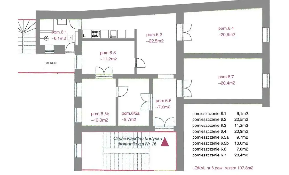 Lokal 108 m2*5 pokoi*balkon*Stare Miasto