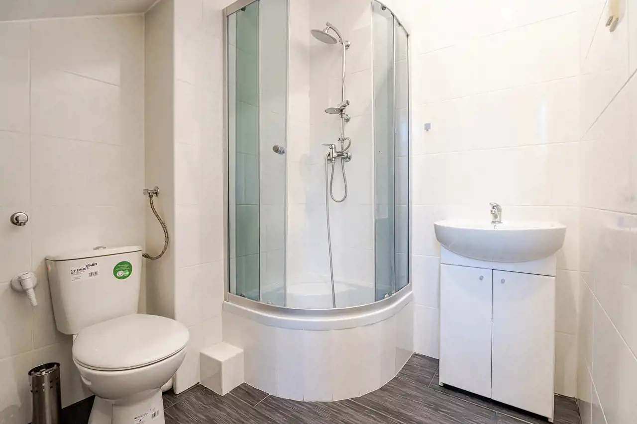- układ: dwa niezależne , duże pokoje plus dwa mniejsze pomieszczenia, 2 toalety w tym jedna z prysznicem plus toaleta na korytarzu,