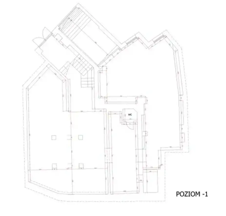Lokal o powierzchni ok. 200 m2 znajduje się na poziomie -1 z dwoma wejsciami po schodach. Składa się z pomieszczeń handlowo-biurowych, magazynu, zaplecza socjalnego, toalet.