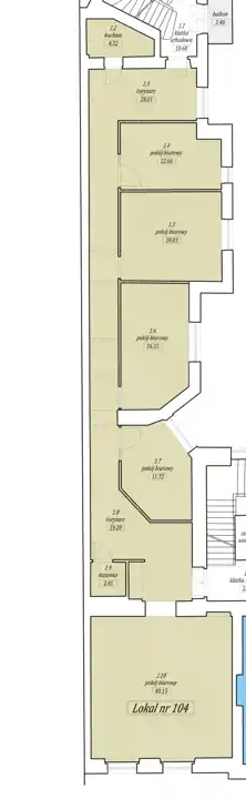 Do wynajęcia lokal biurowy o powierzchni 158m2 (netto) położony na I piętrze w kamienicy przy ulicy Karmelickiej.