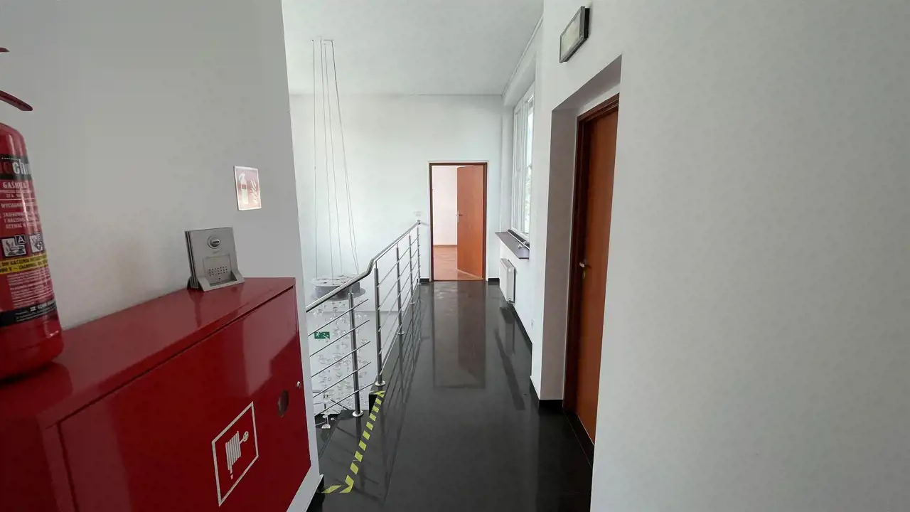 Lokal znajduje się na 1 piętrze w 2 kondygnacyjnym budynku ; posiada 6 pomieszczeń biurowych ; łazienkę i pomieszczenie kuchenne oraz balkon.