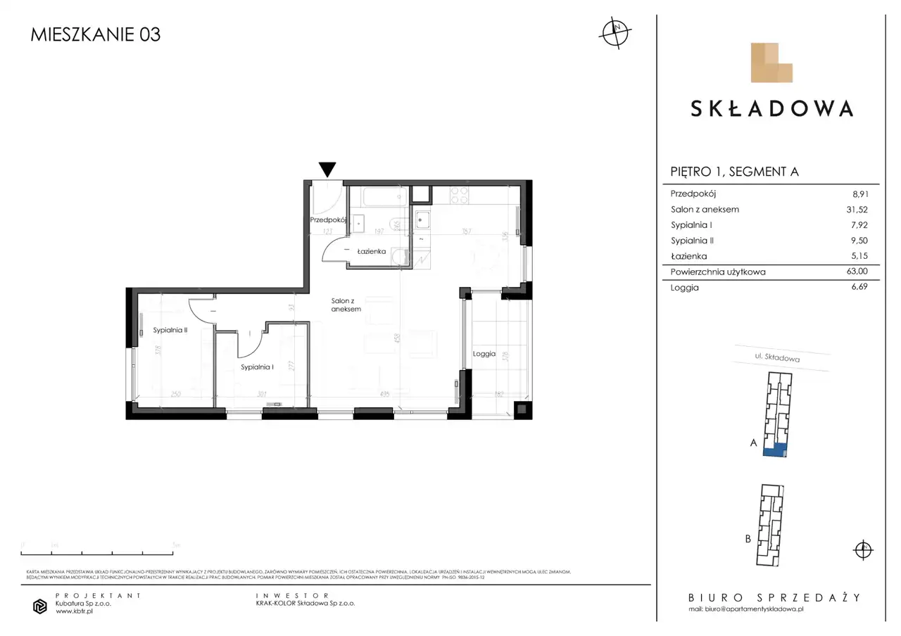 - Charakterystyka mieszkania 62.21 m2, 3 pokoje