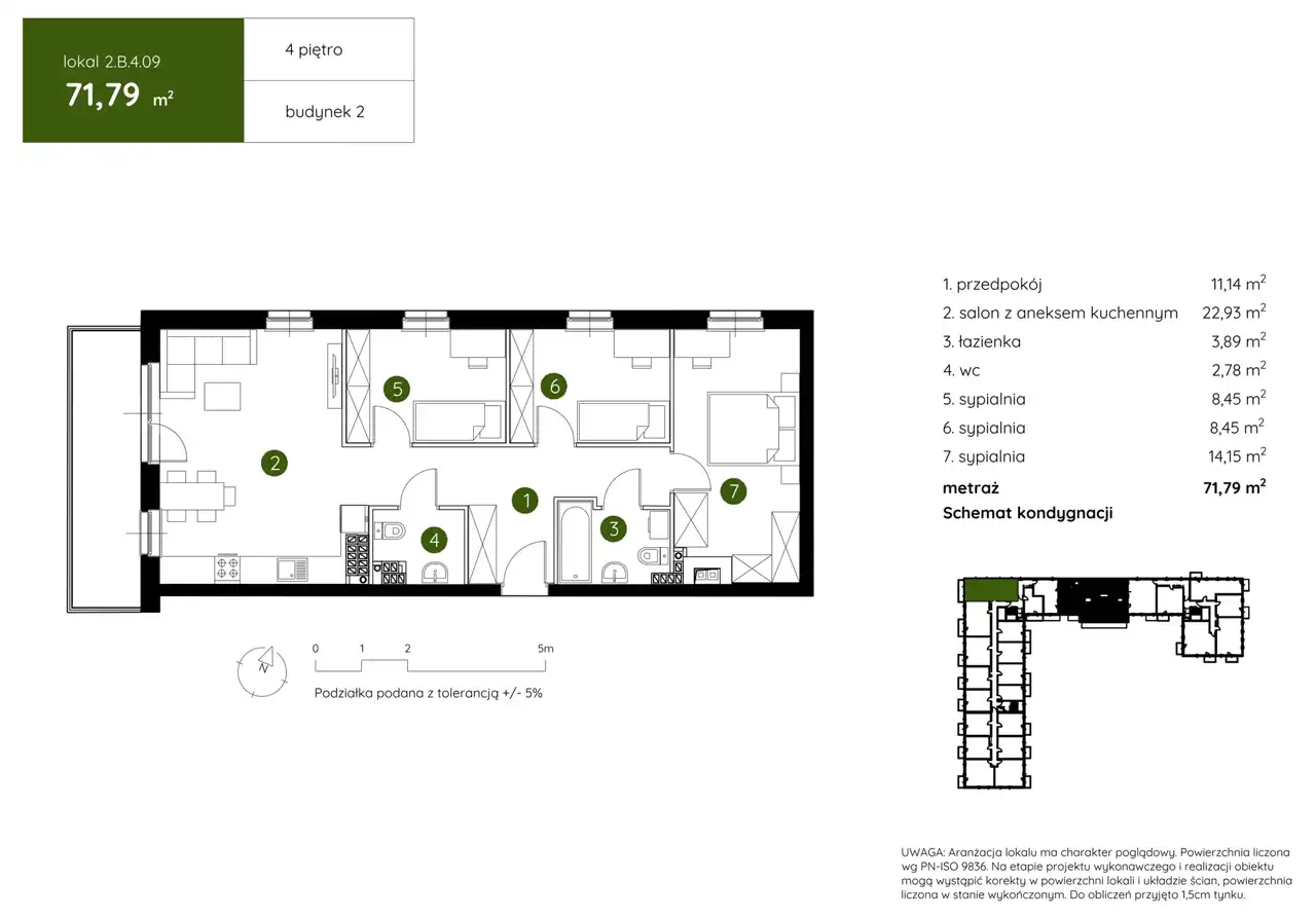 - Charakterystyka mieszkania 71.79 m2, 4 pokoje