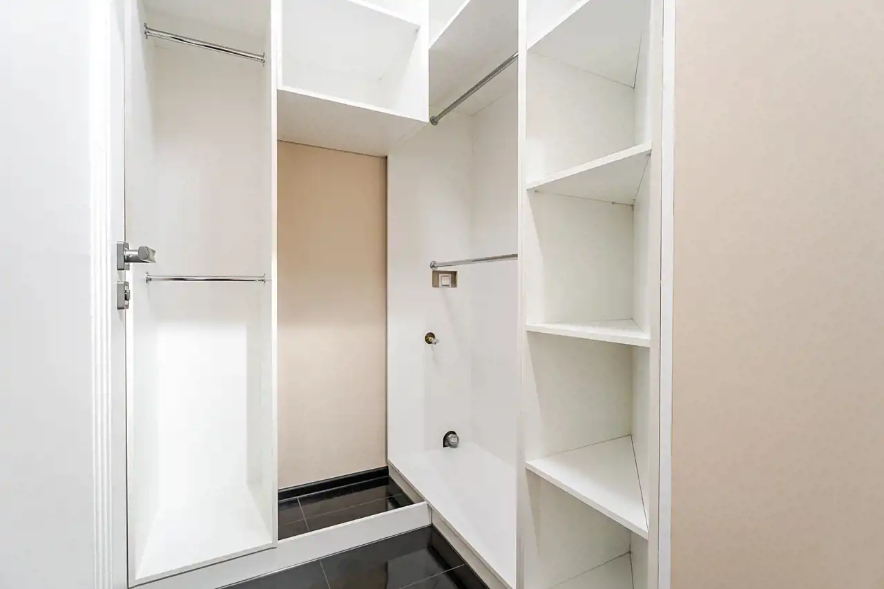 - wygodna przestronna garderoba z dużą ilością półek oraz miejscem na pralkę i suszarkę,