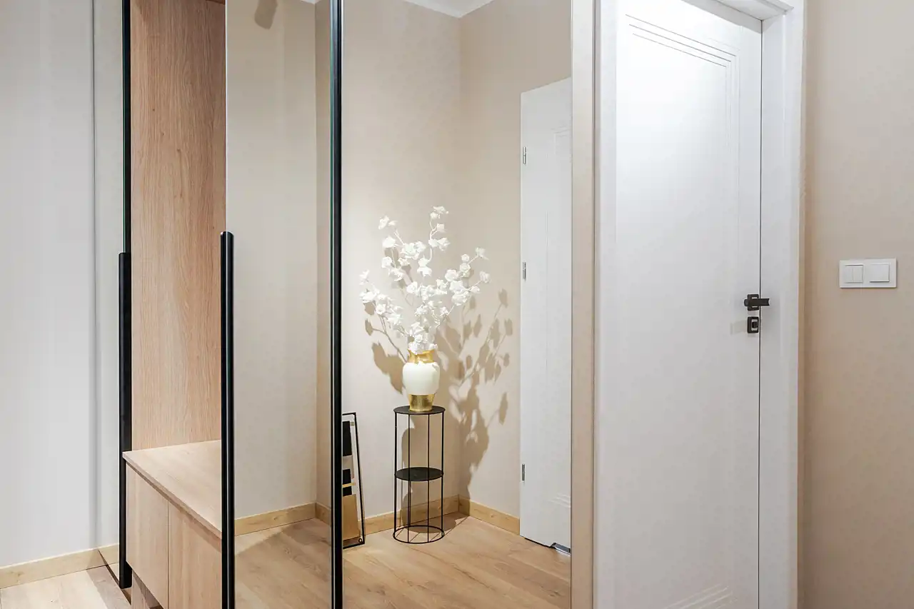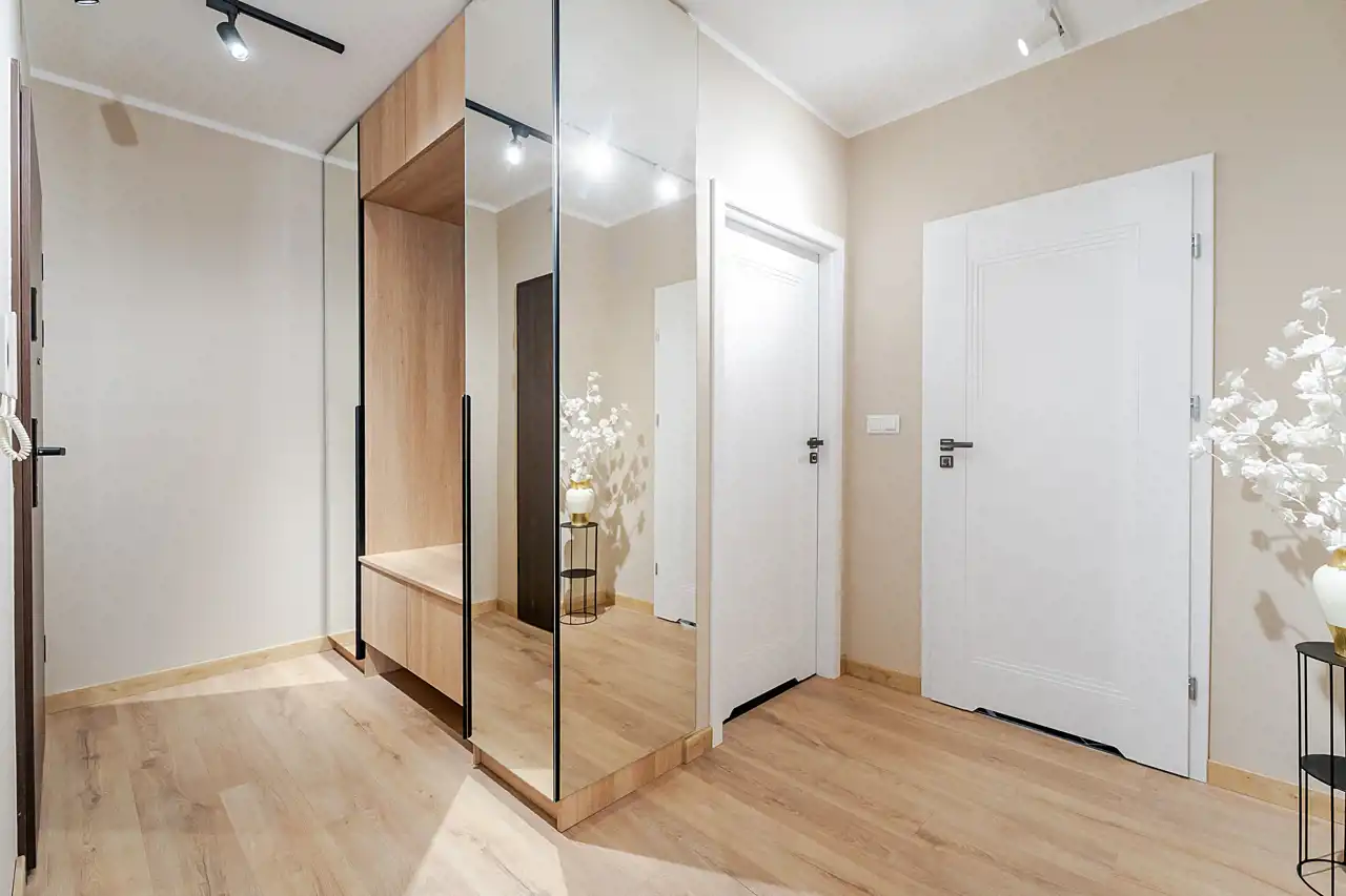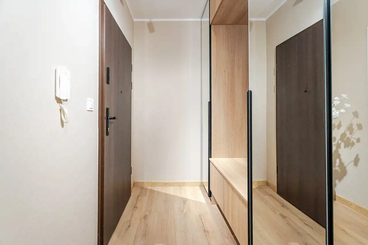 - jasny hol z pojemną szafą.