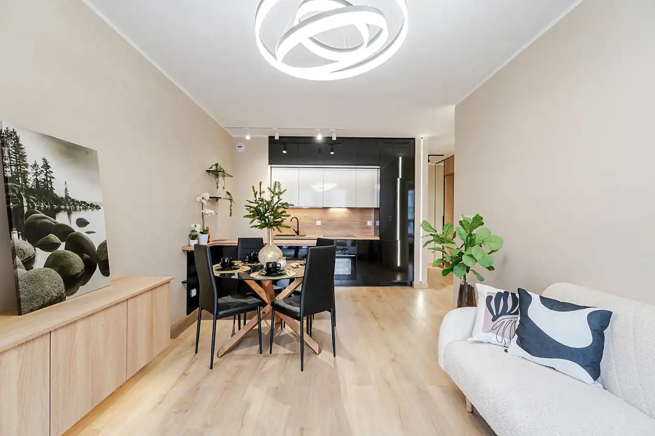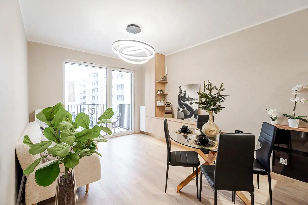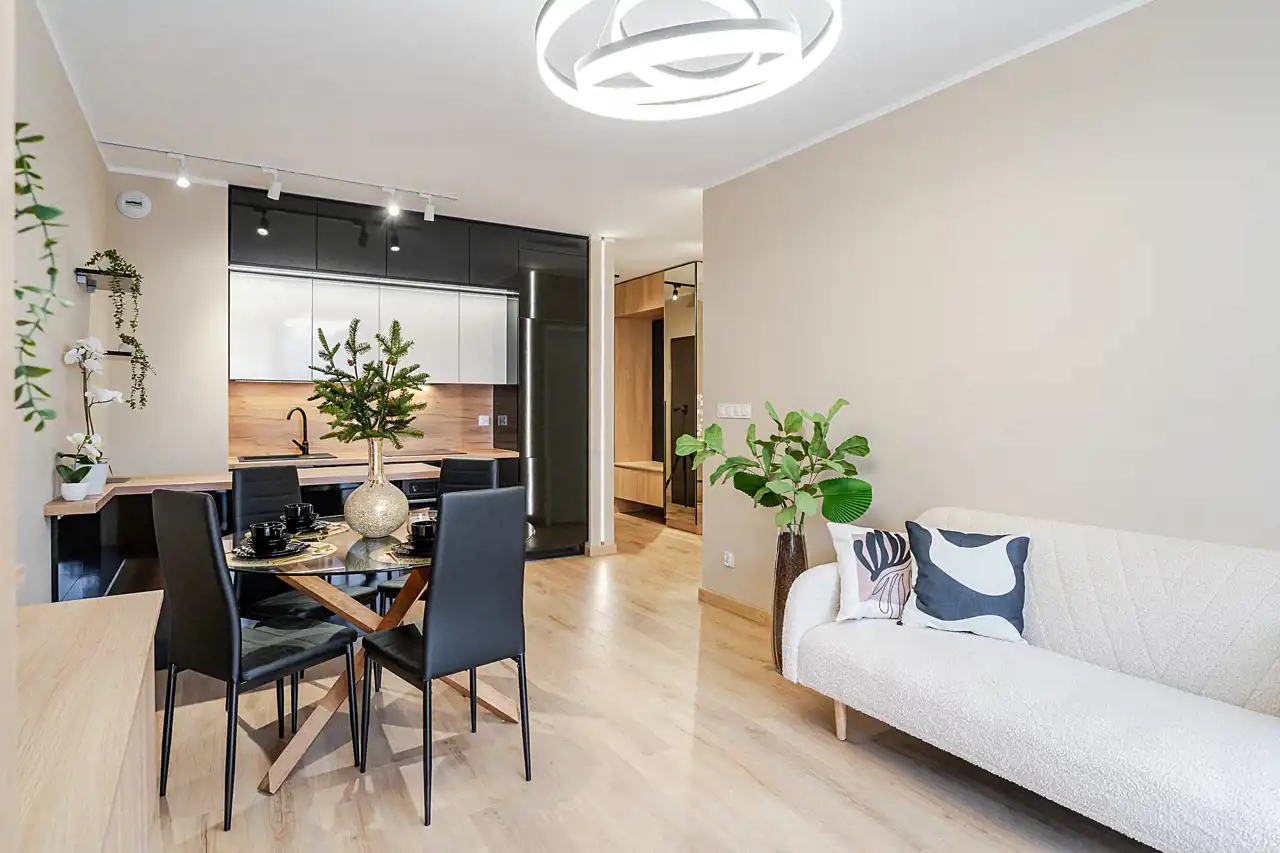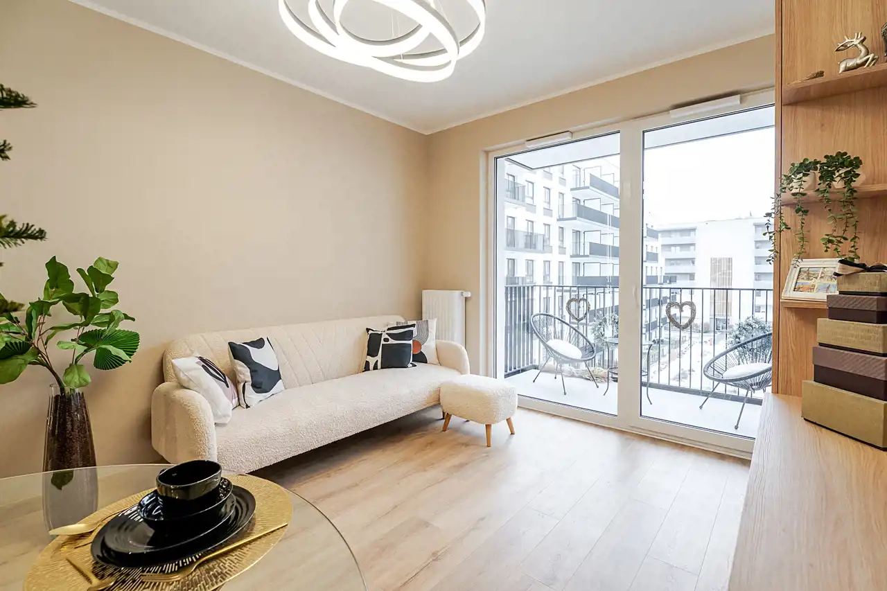 Mieszkanie jest w pełni urządzone i wyposażone w nowoczesne meble oraz sprzęty – gotowe do zamieszkania od zaraz. Wystarczy przekroczyć próg i poczuć się jak u siebie.