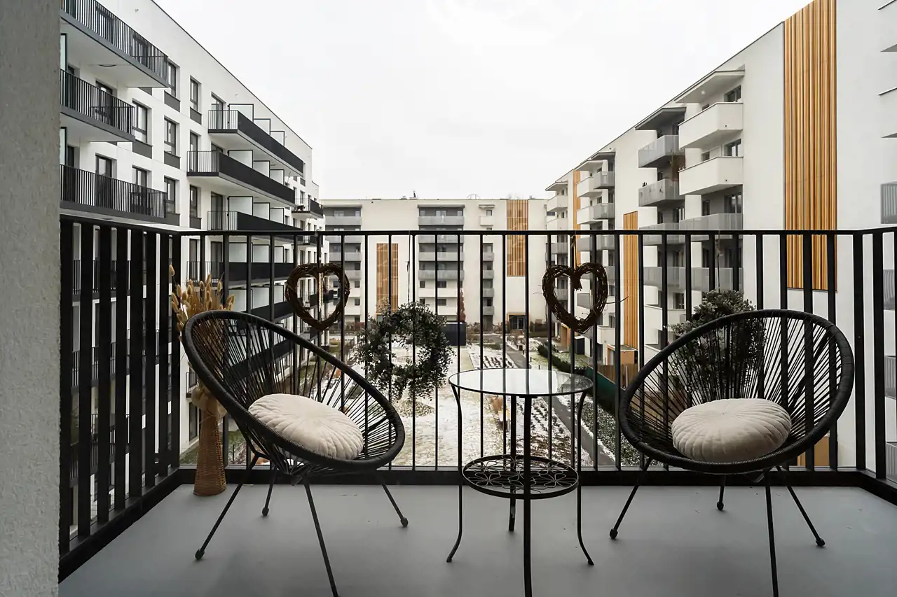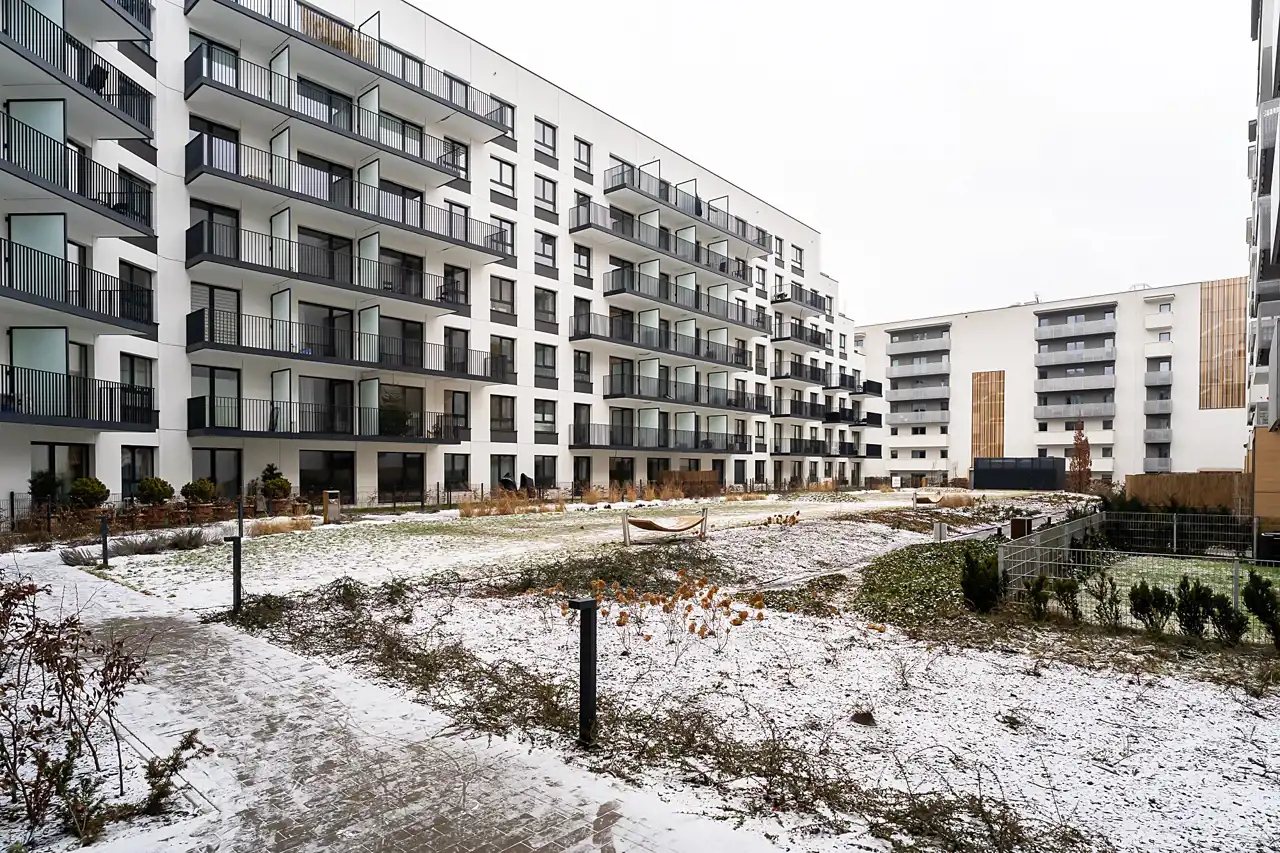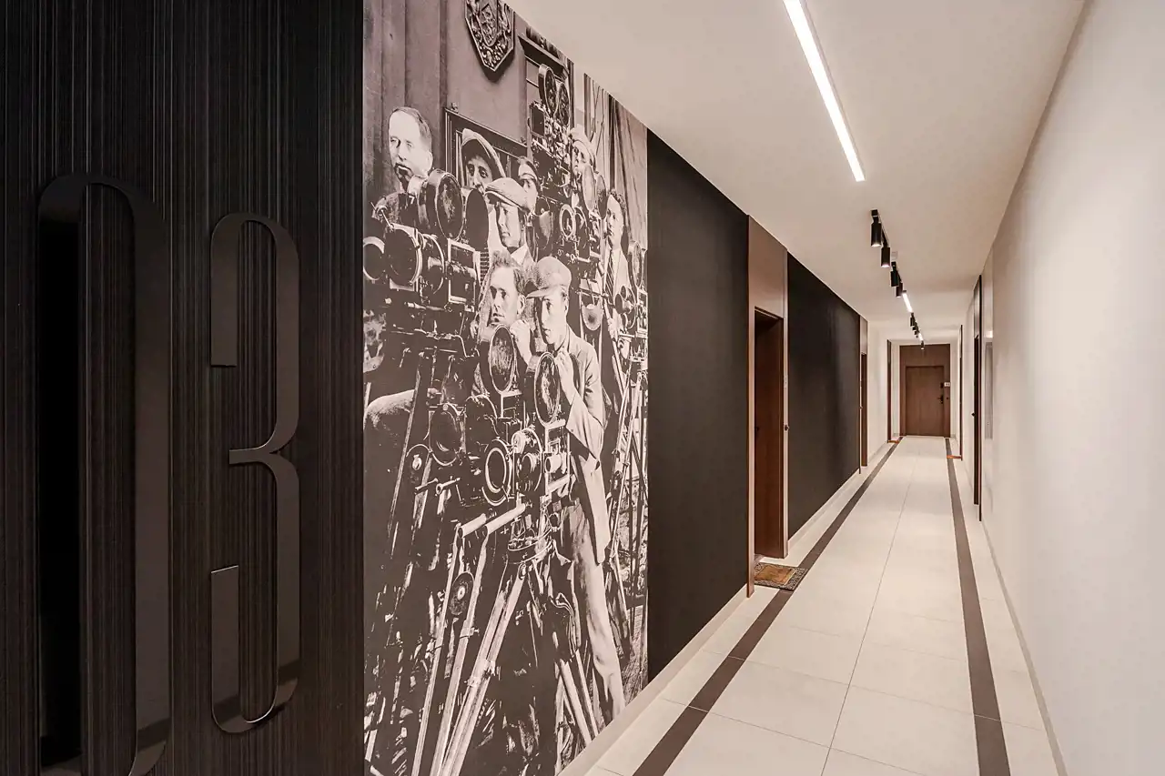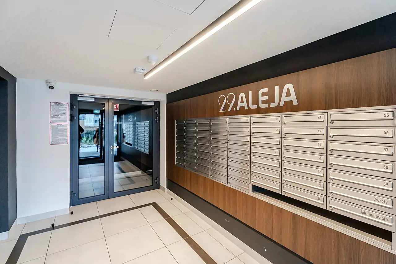 Osiedle 29. Aleja zostało zaprojektowane z wyjątkową dbałością o estetykę i klimat miejsca. Wnętrza części wspólnych zdobią grafiki inspirowane tematyką filmową, a przestrzeń między budynkami obejmuje starannie zaplanowaną zieleń, plac zabaw oraz elementy małej architektury sprzyjające odpoczynkowi.
