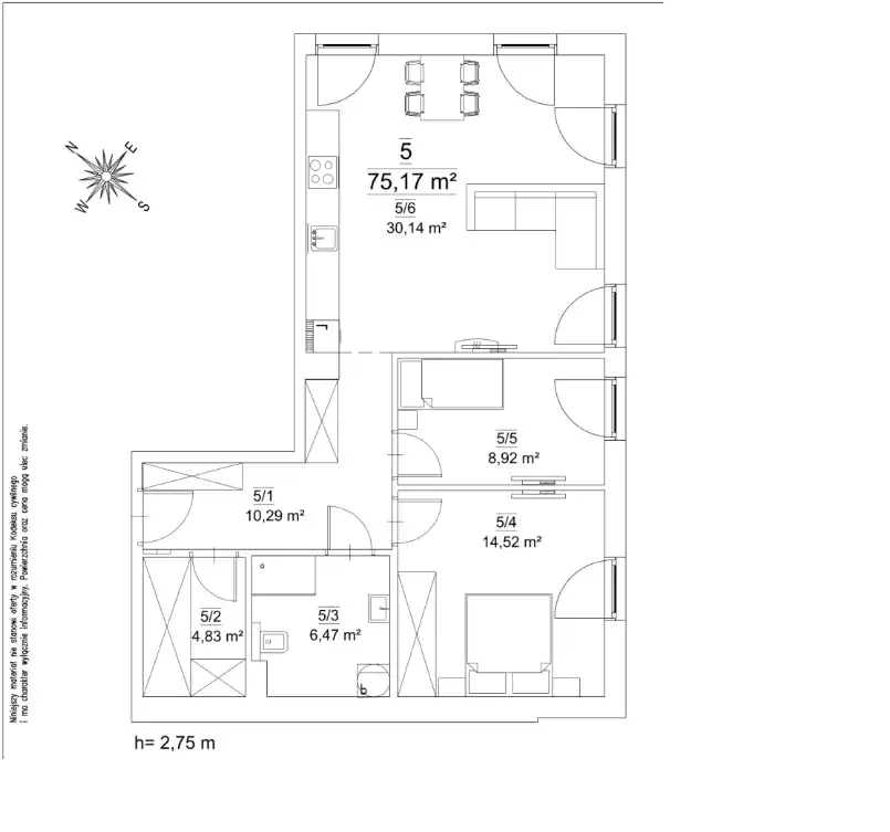 - Charakterystyka mieszkania 75.17 m2, 3 pokoje